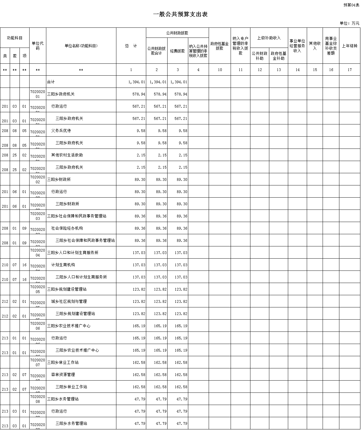 其中基层统计达标工作经费0.5万元,均衡性公用经费95.4万元,社会综合管理经费36.42万元,五保供养配套经费23.88万元,乡镇工会团委妇联工作经费6万元,乡镇免费开放配套经费0.5万元发,借调人员经费1.5万元。