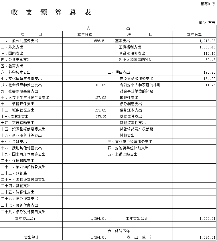 (二)支出预算:1394.01万元