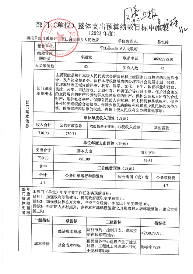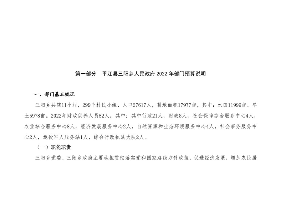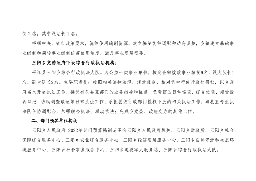 平江县三阳乡人民政府2022年度部门预算