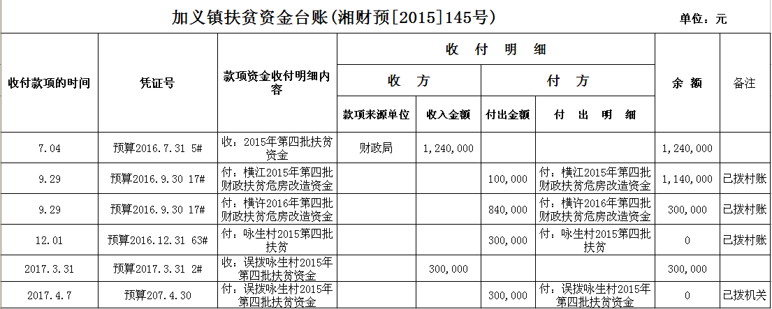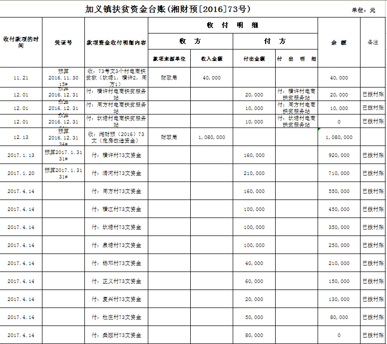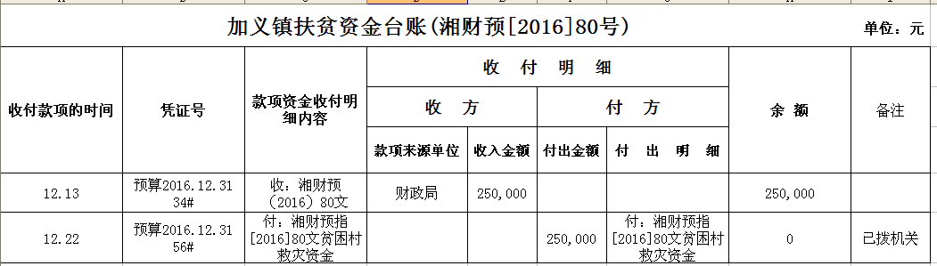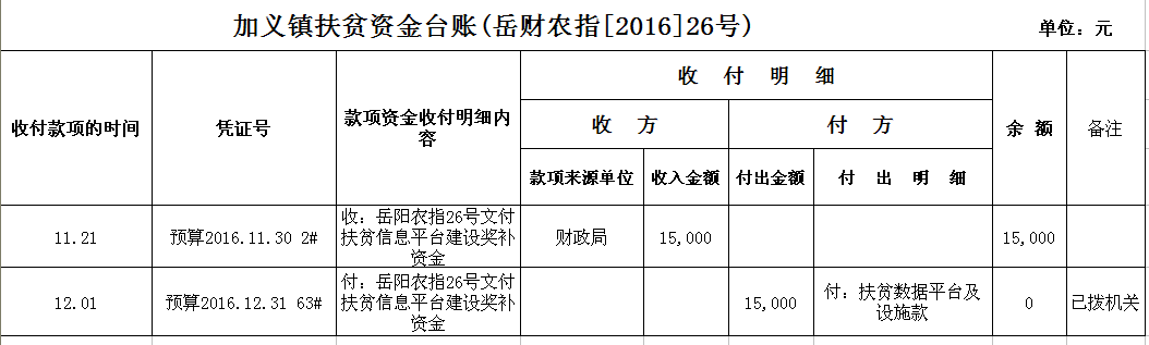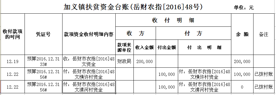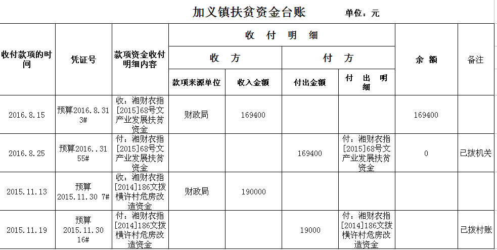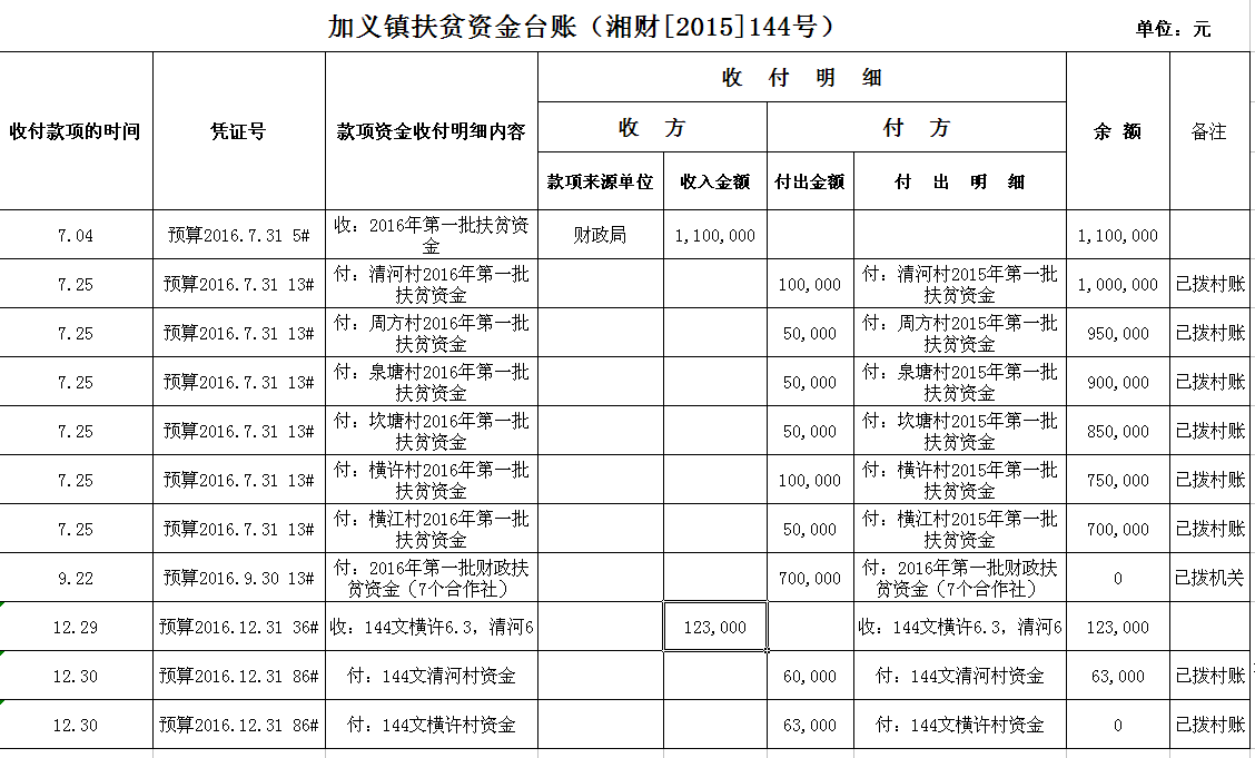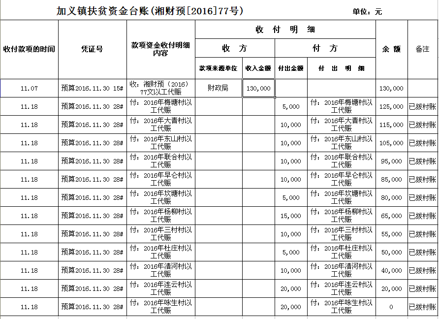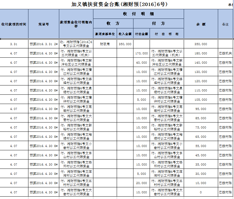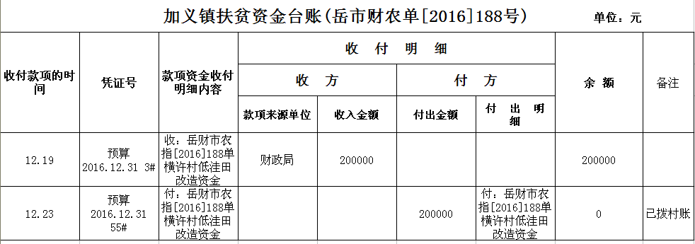 加义镇2016年扶贫资金拨付台账