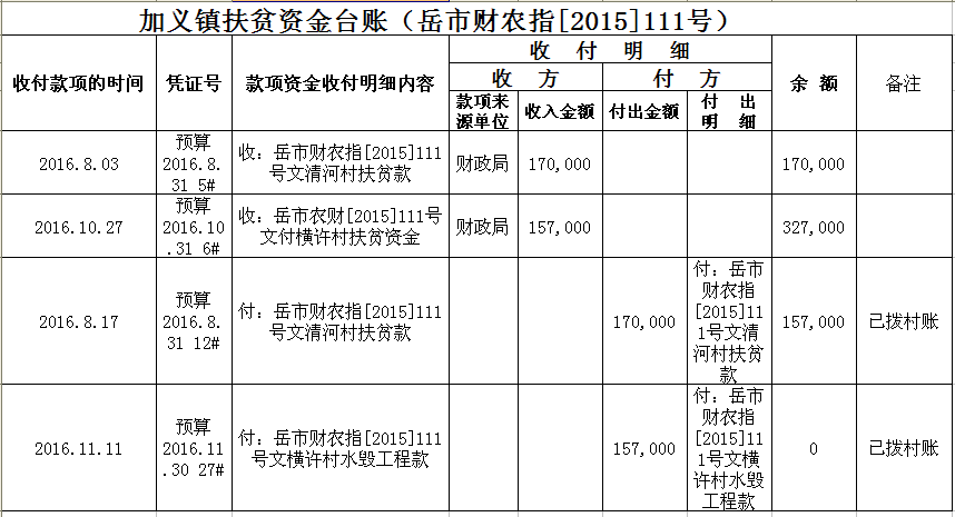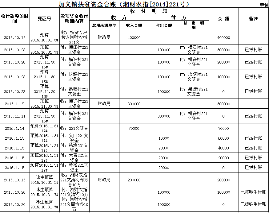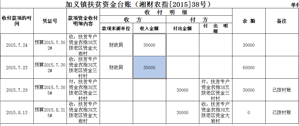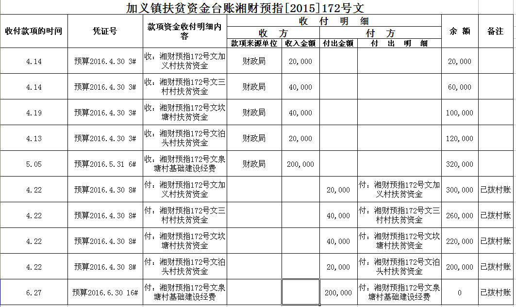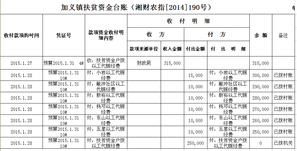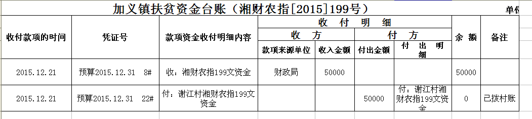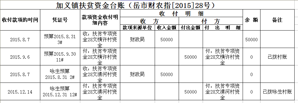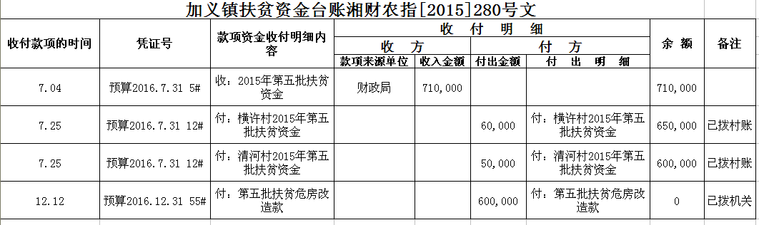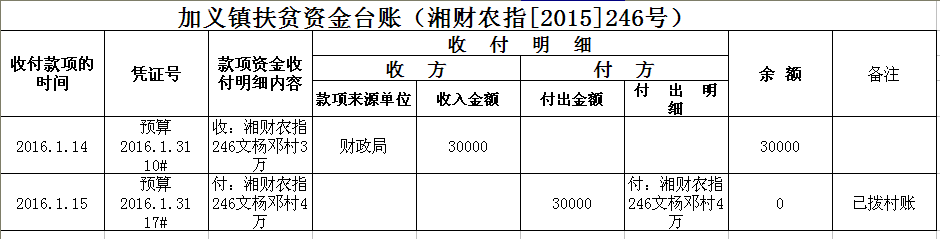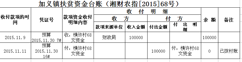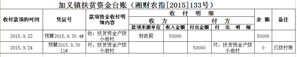 加义镇2015年扶贫资金拨付台账