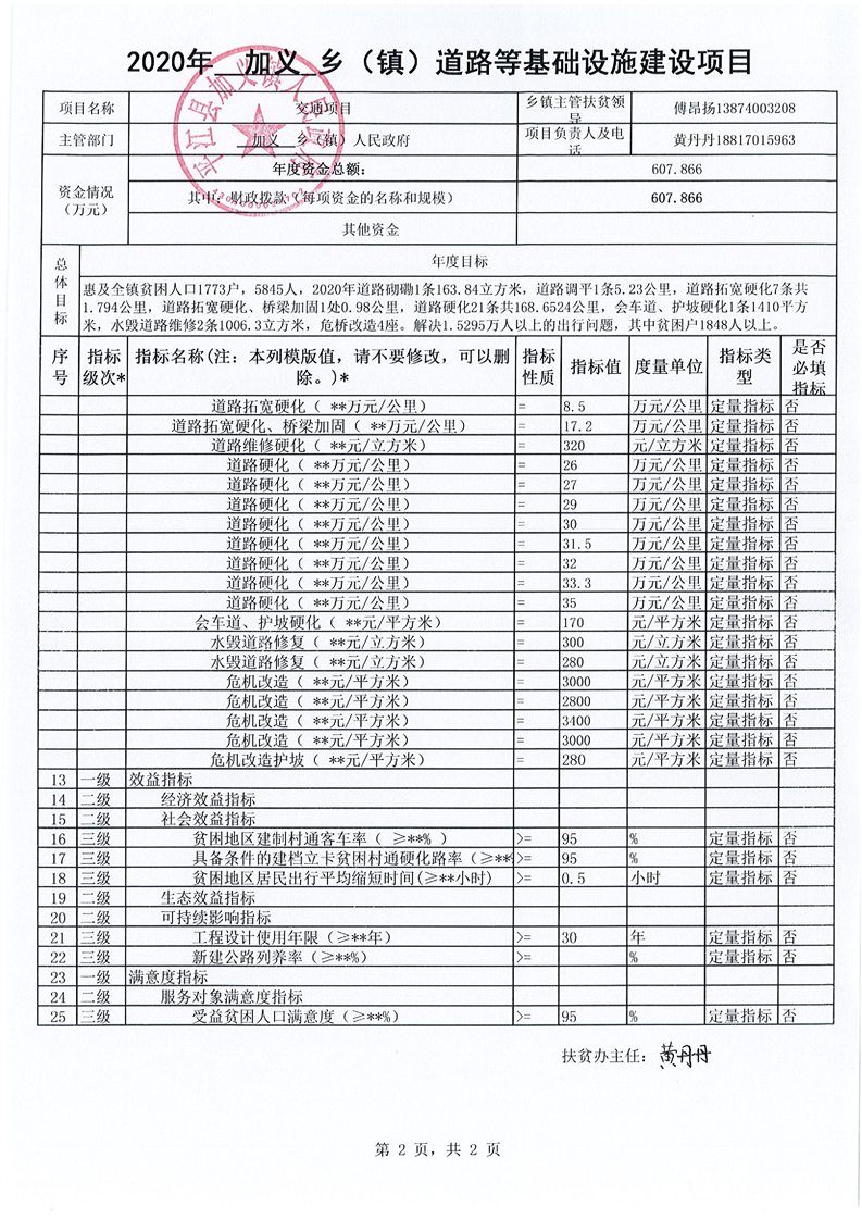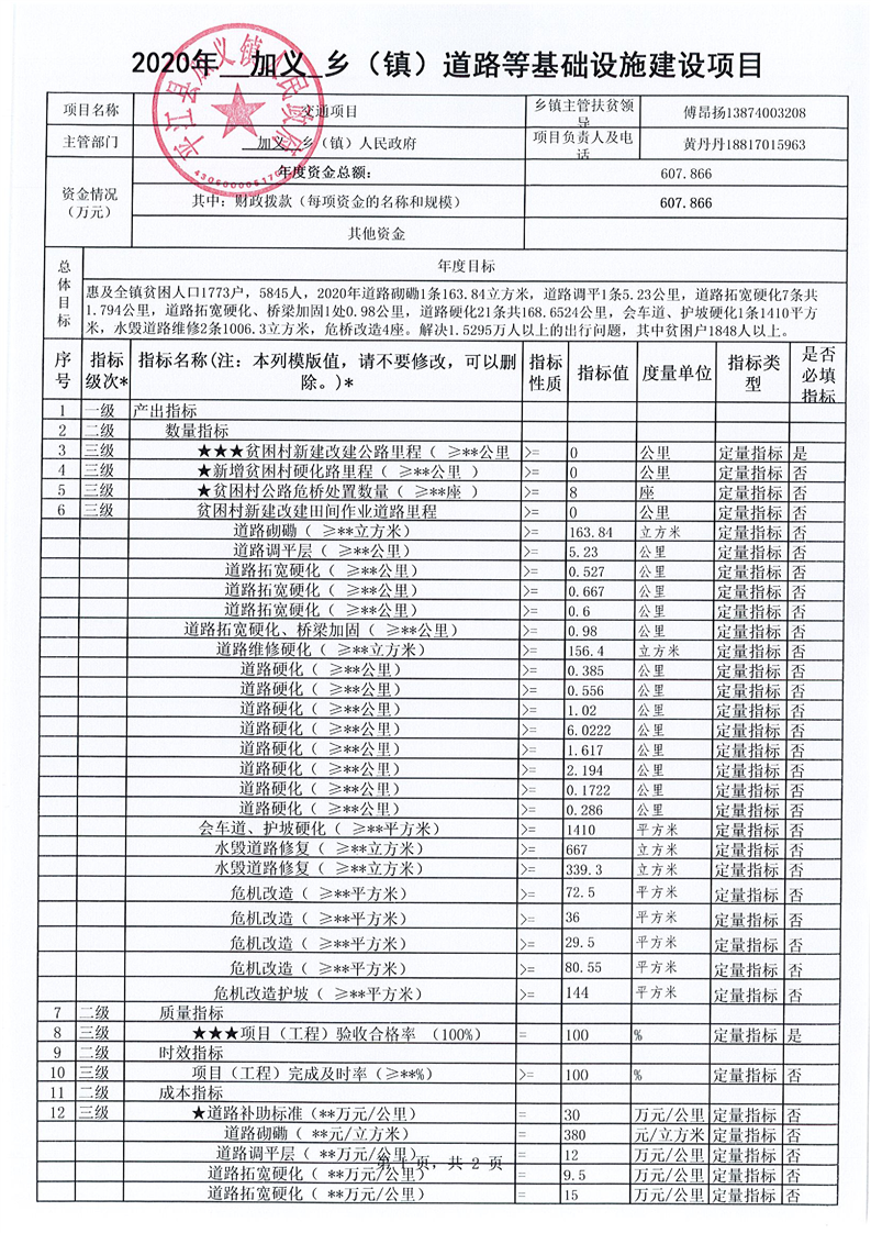 加义镇2020年财政扶贫项目全过程绩效管理表