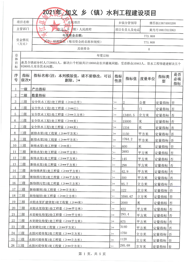 加义镇2021年统筹整合涉农资金项目建设绩效申报表