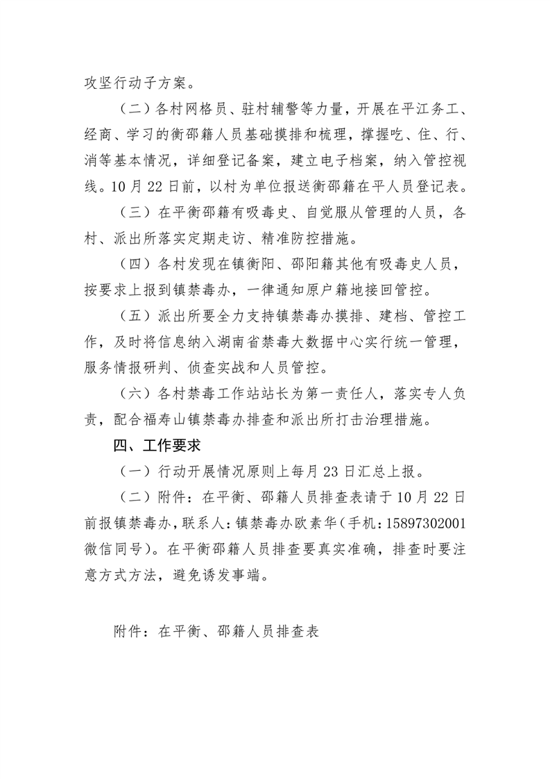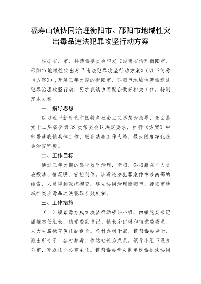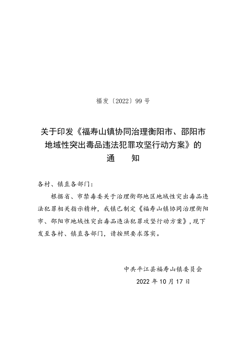 关于印发《福寿山镇协同治理衡阳市、邵阳市 地域性突出毒品违法犯罪攻坚行动方案》的 通知