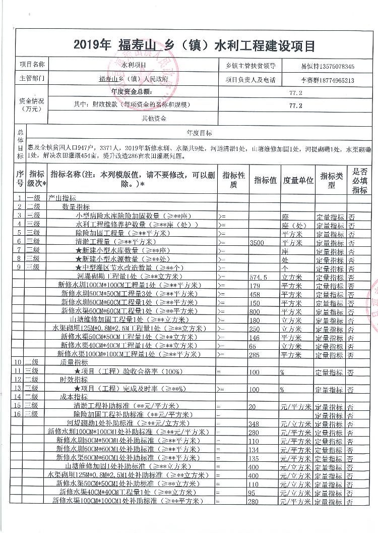 福寿山镇2019年统筹整合涉农资金项目库预算绩效申报