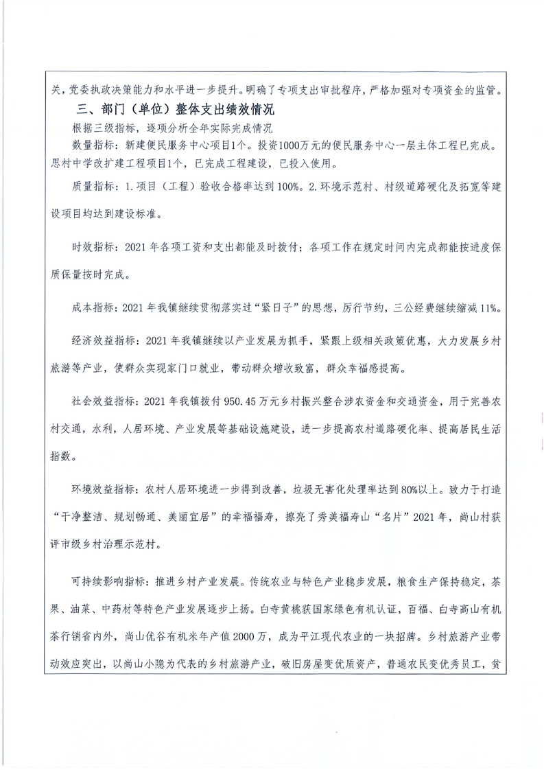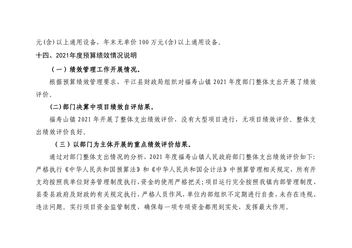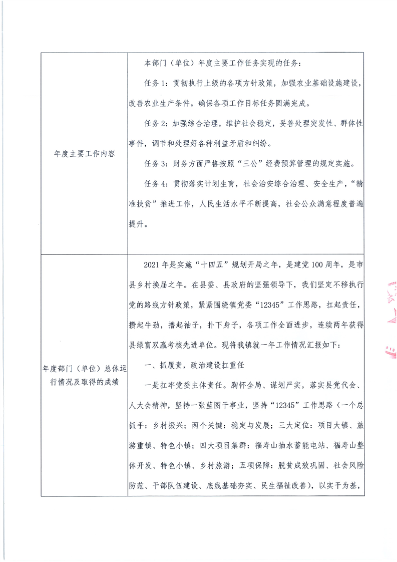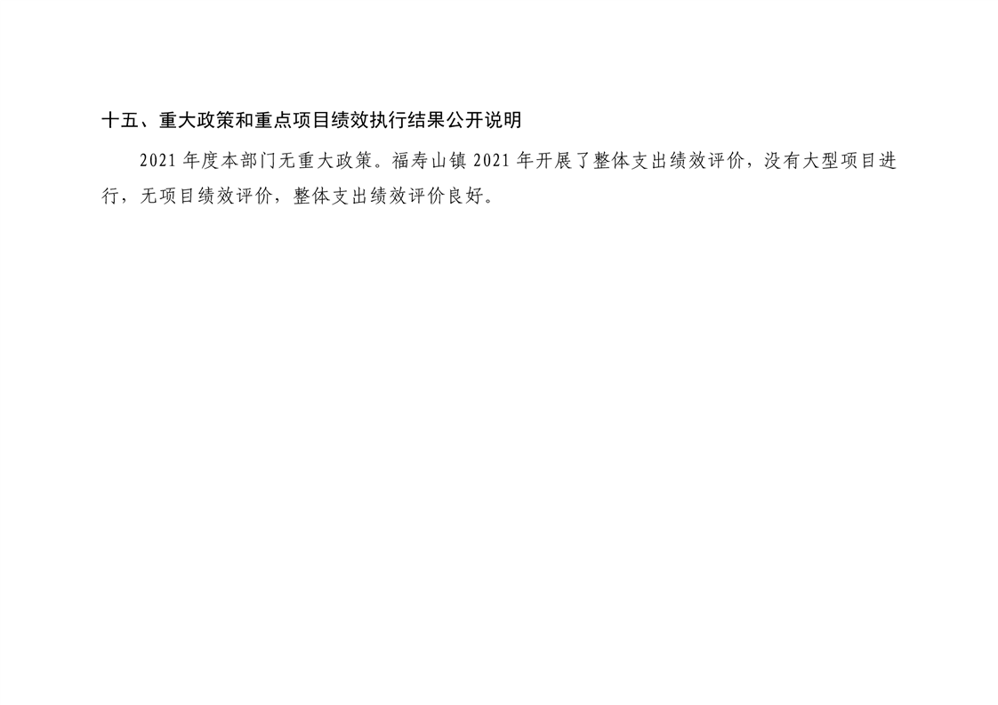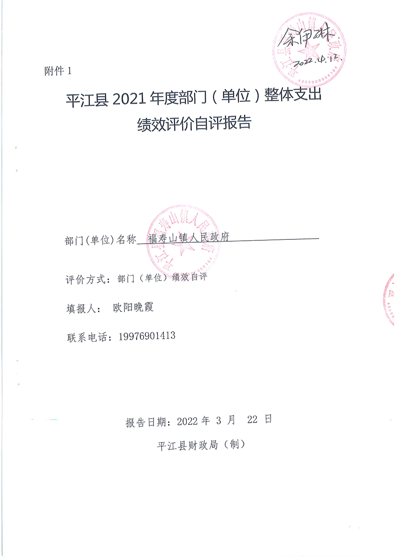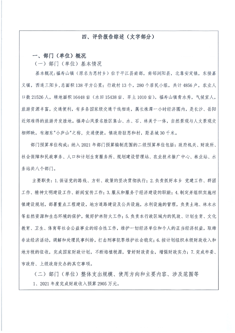 2021年度福寿山镇人民政府部门决算及整体绩效目标自评表
