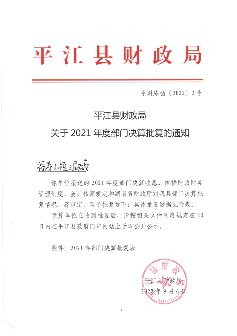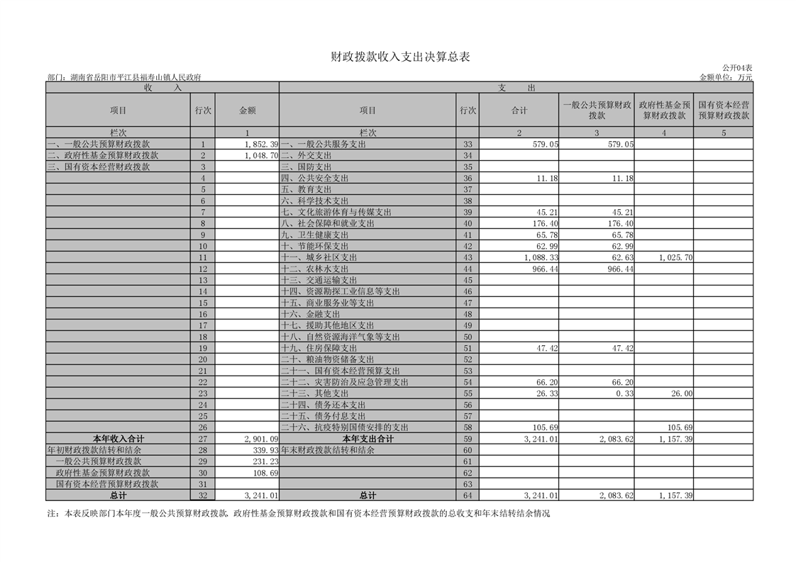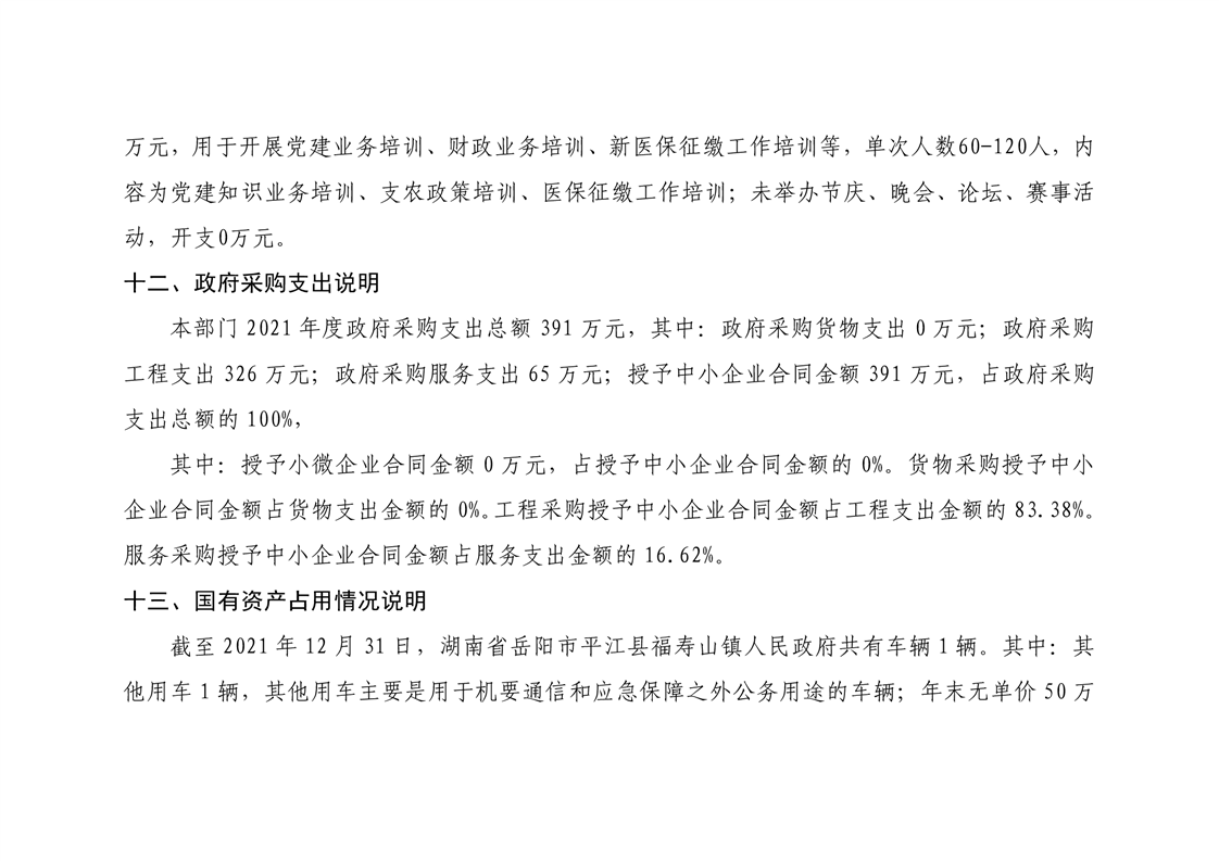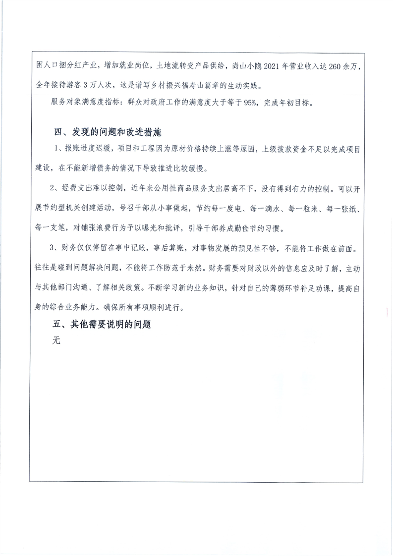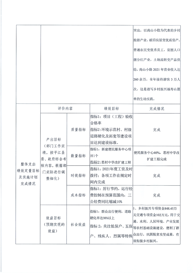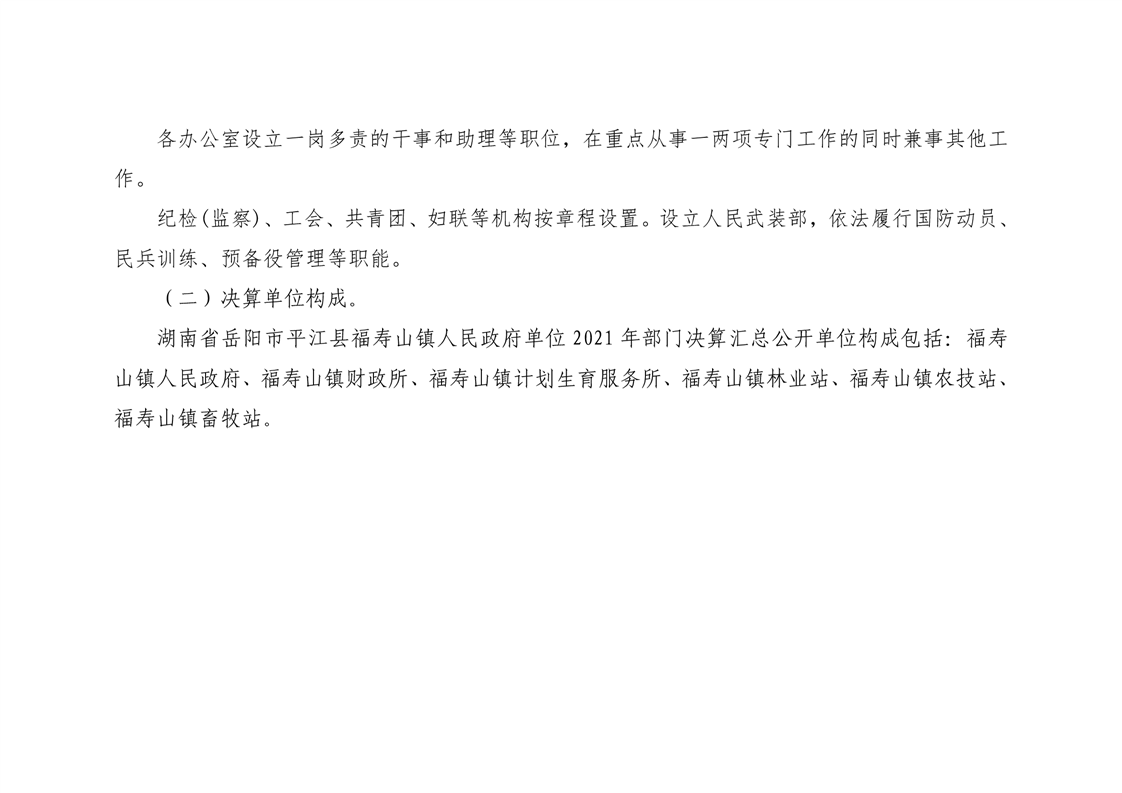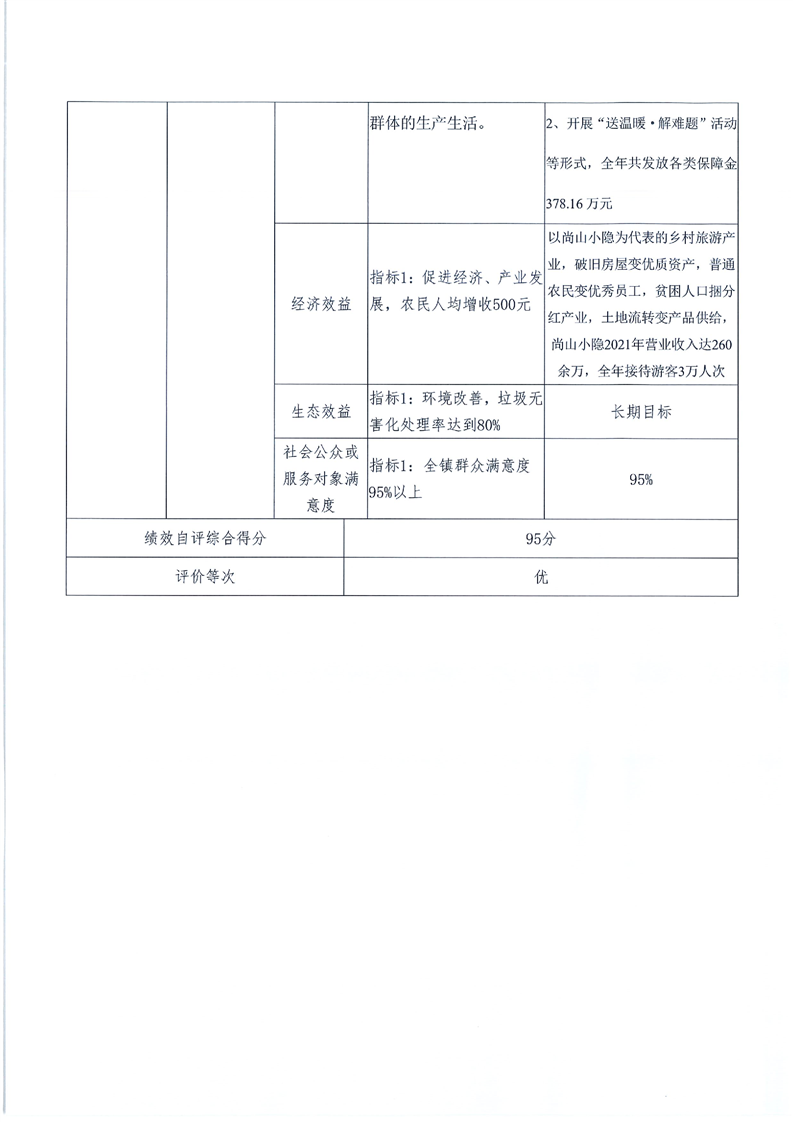 2021年度福寿山镇人民政府部门决算及整体绩效目标自评表