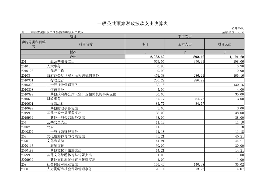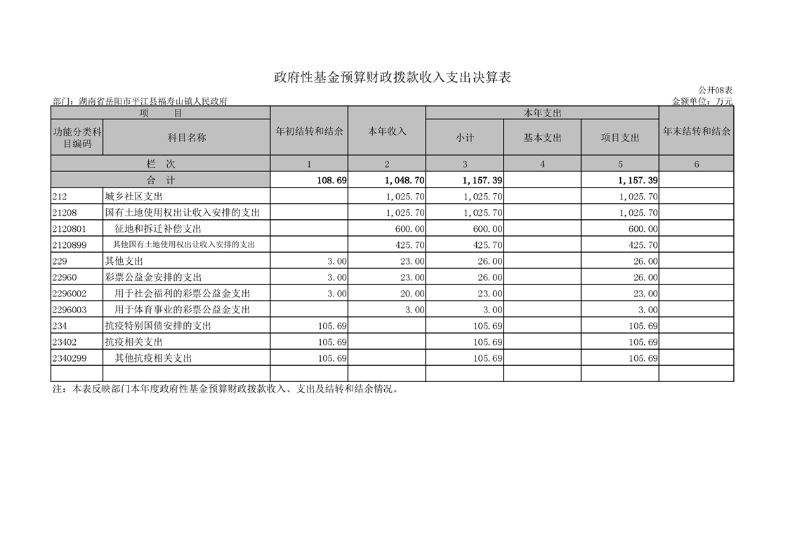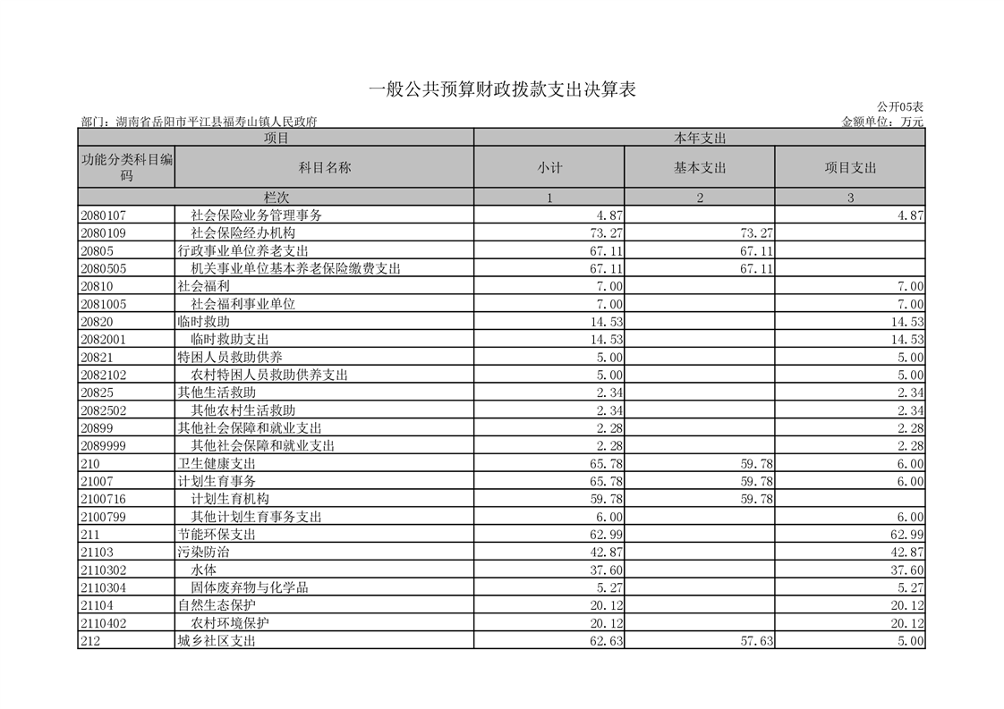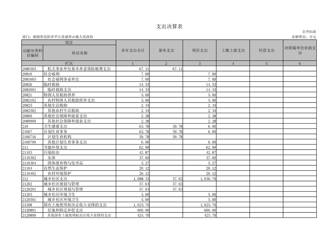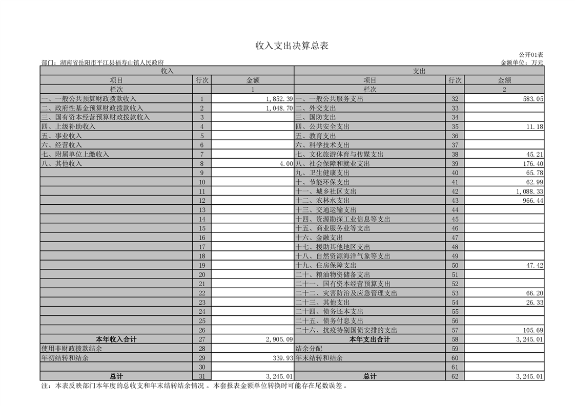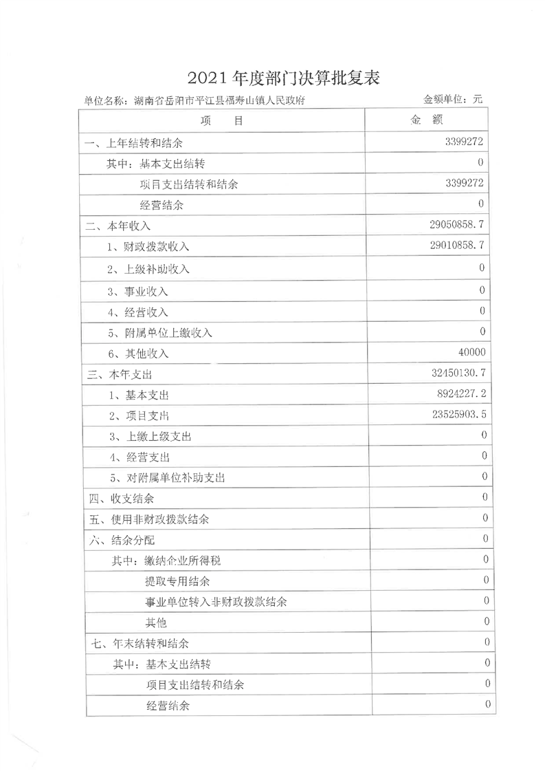 2021年度福寿山镇人民政府部门决算及整体绩效目标自评表