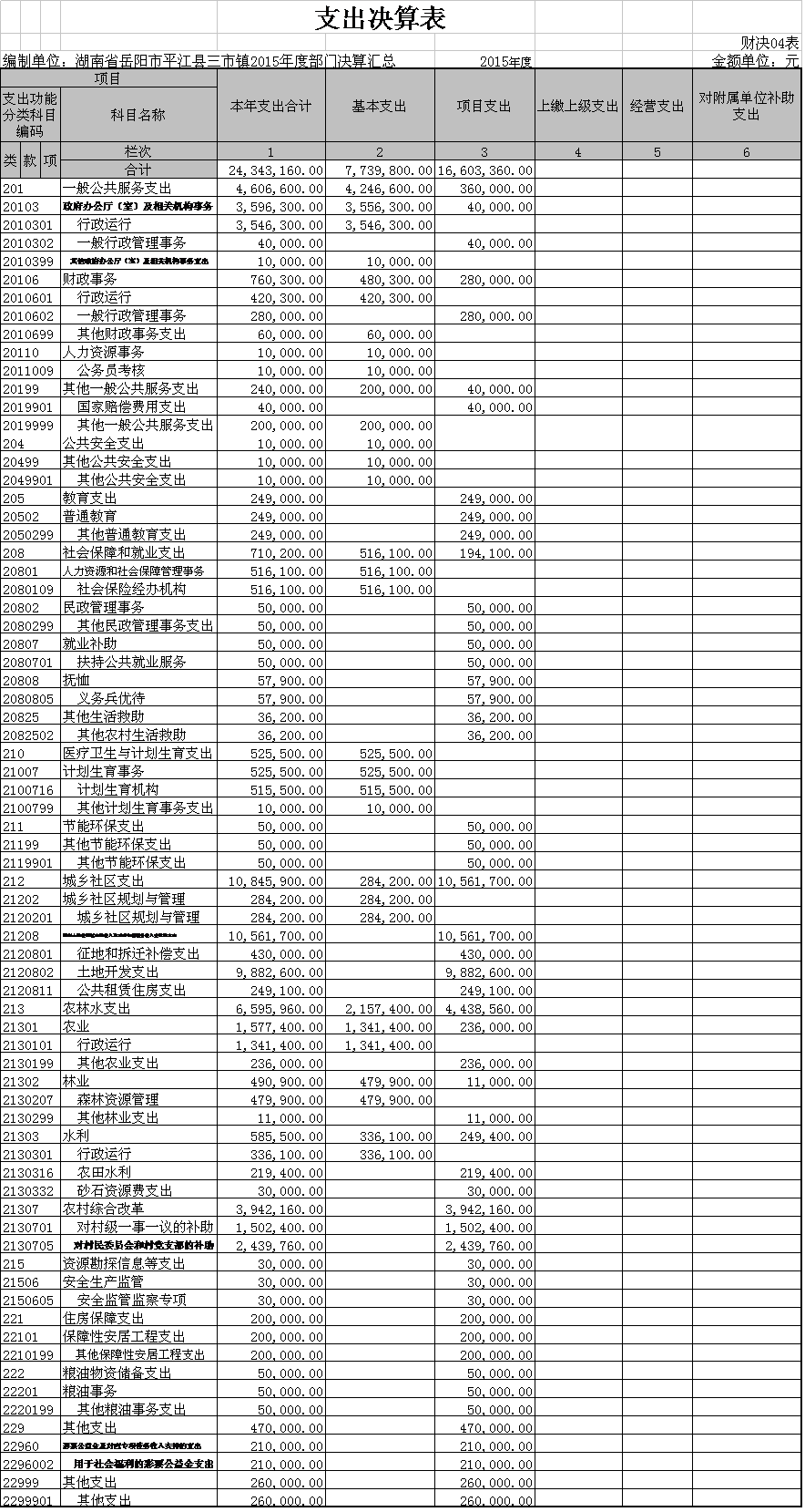 (二)本年财政总支出合计24343160元。