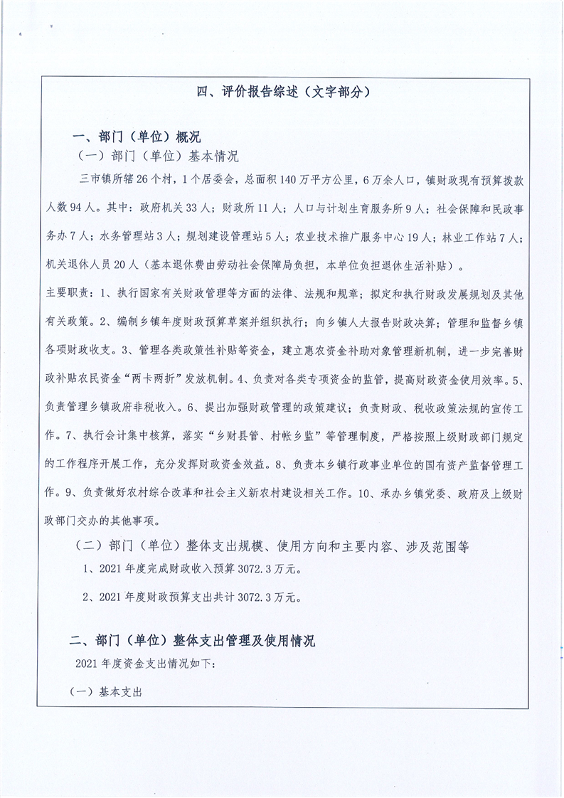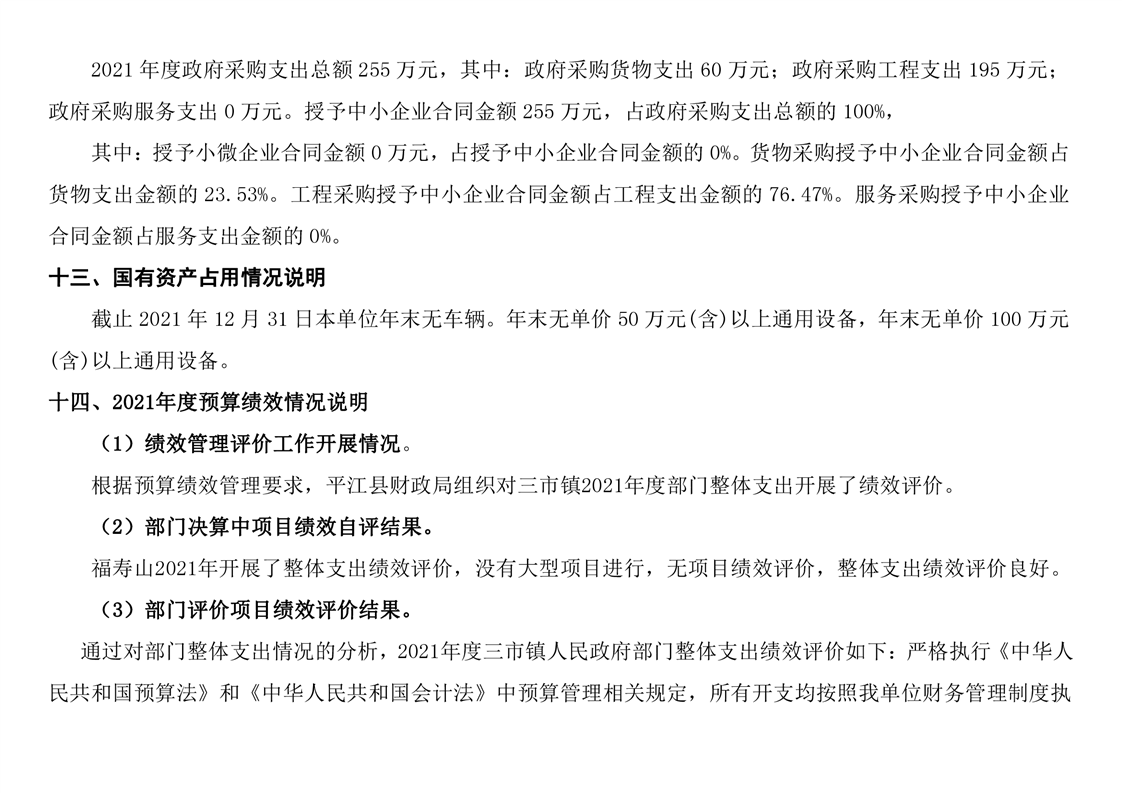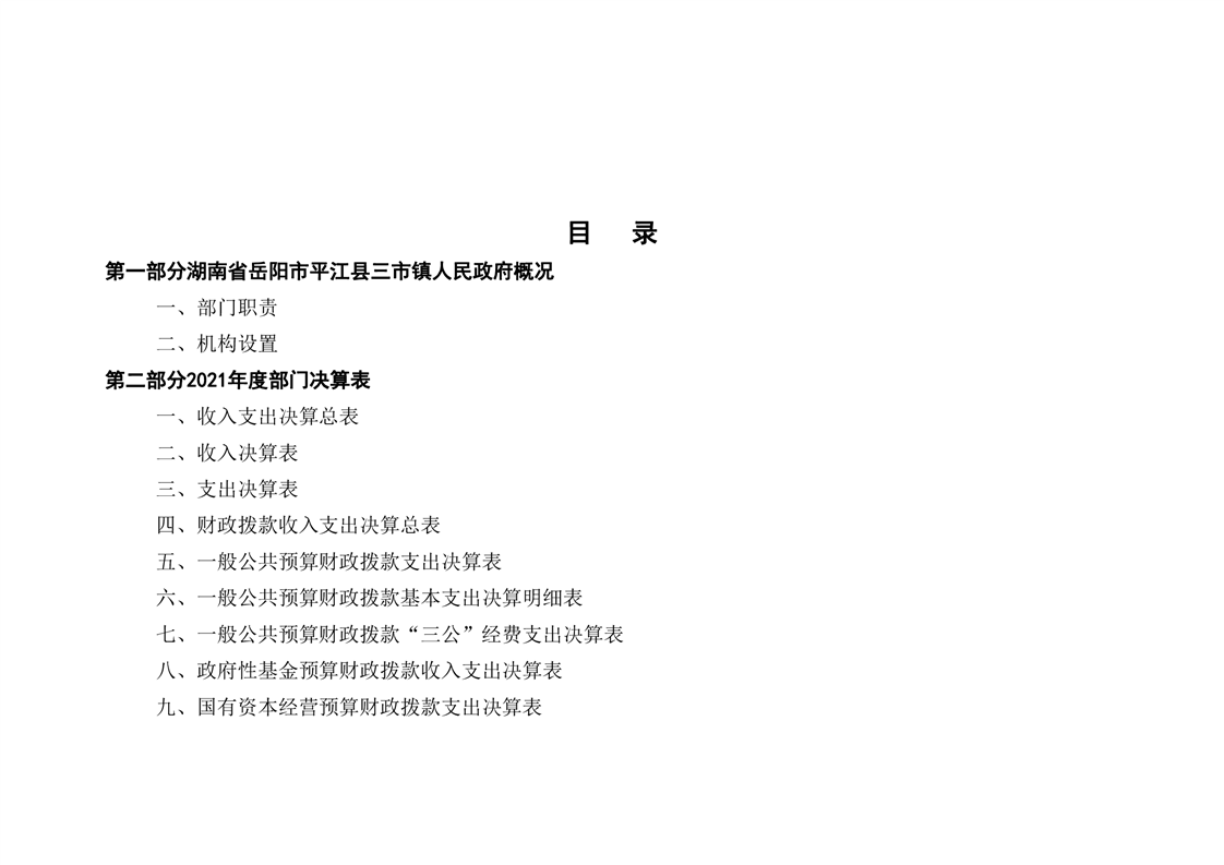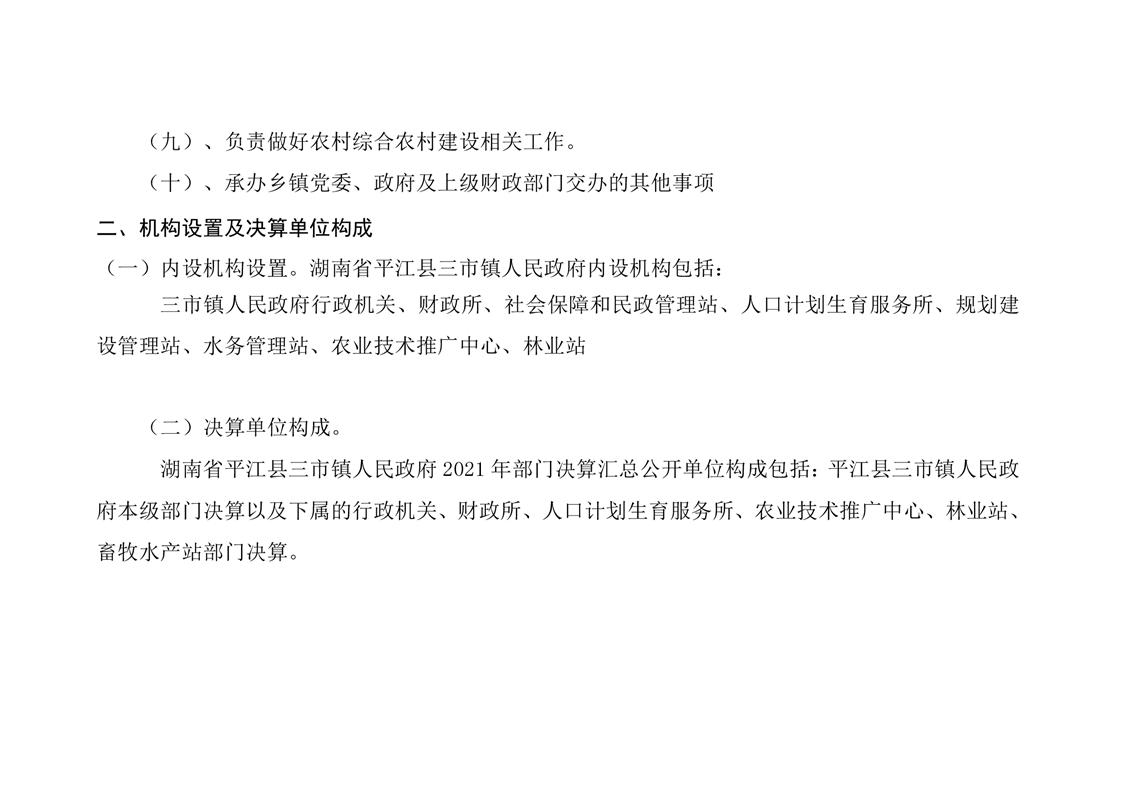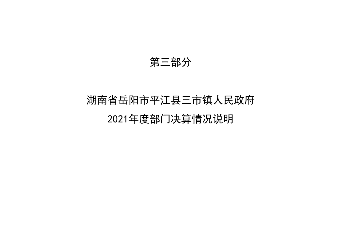 2021年度湖南省岳阳市平江县三市镇人民政府部门决算及整体绩效