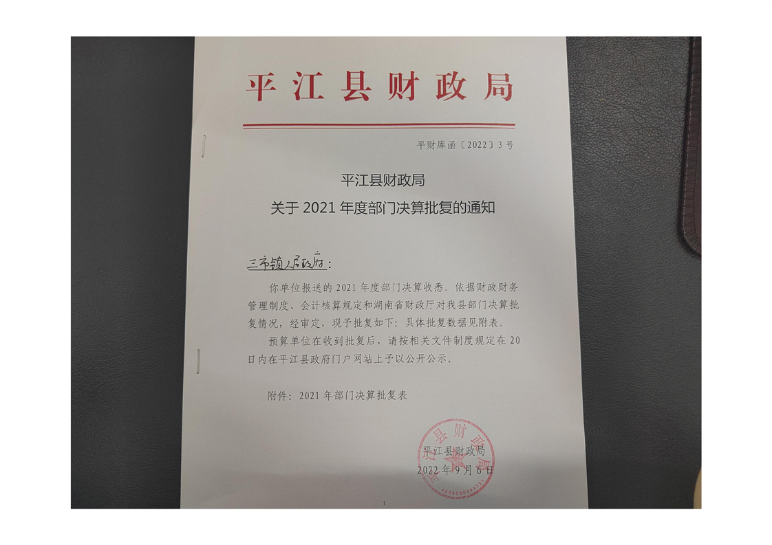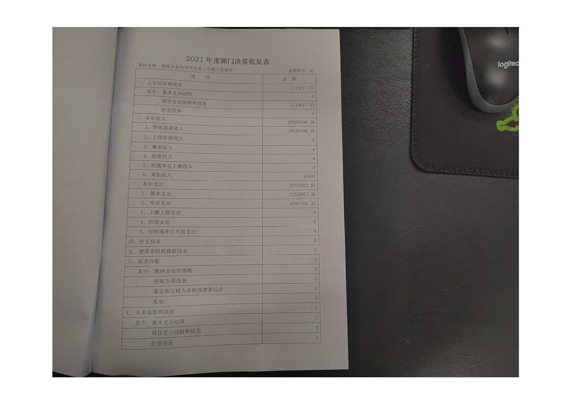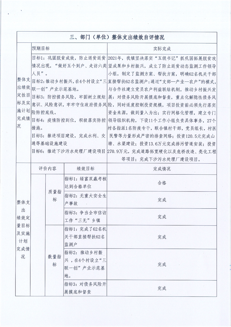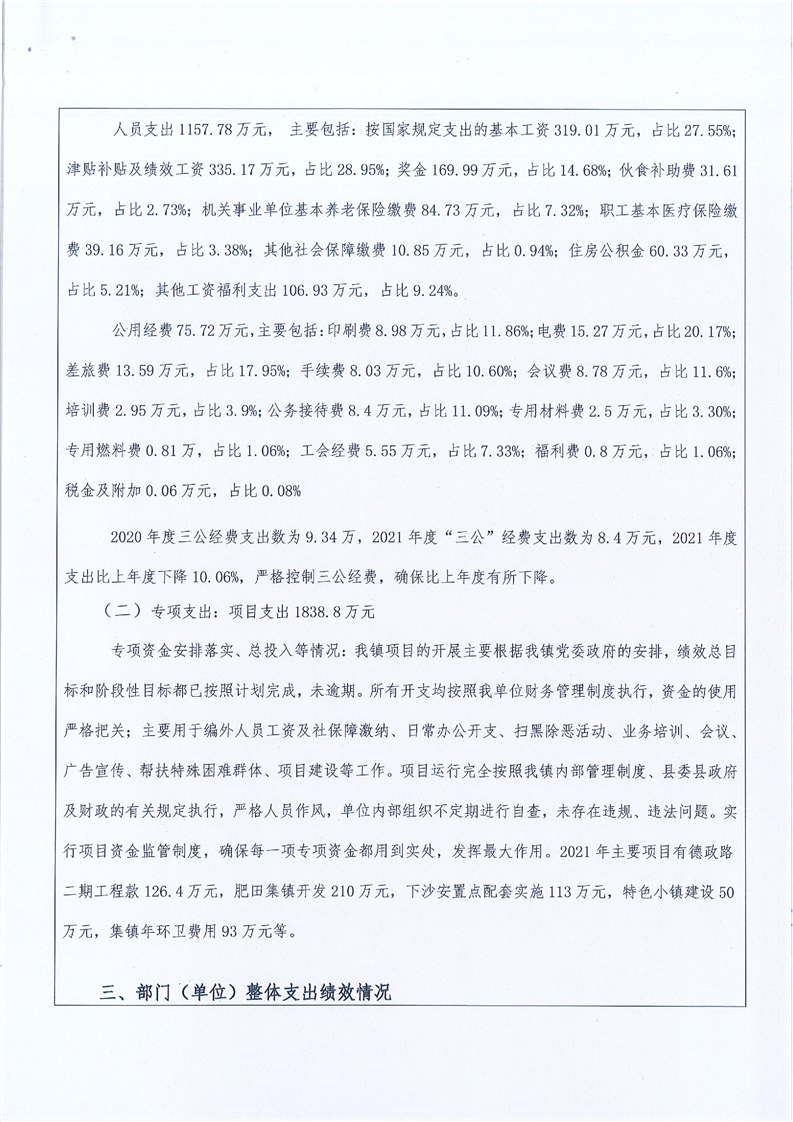2021年度湖南省岳阳市平江县三市镇人民政府部门决算及整体绩效