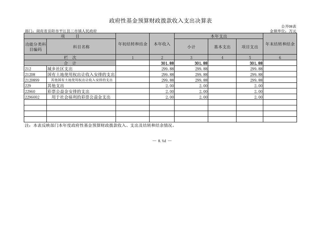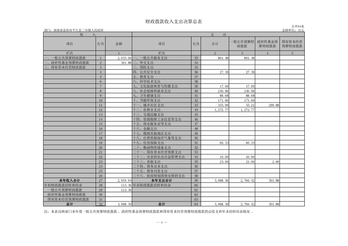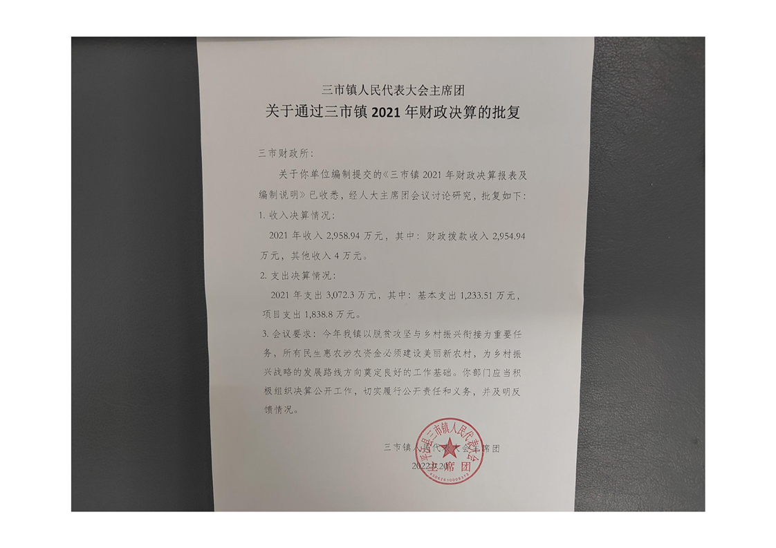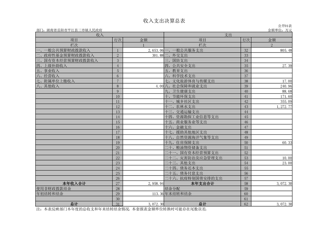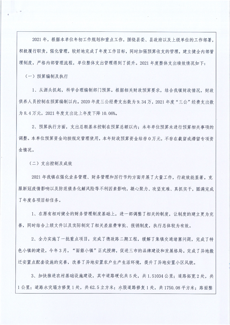2021年度湖南省岳阳市平江县三市镇人民政府部门决算及整体绩效