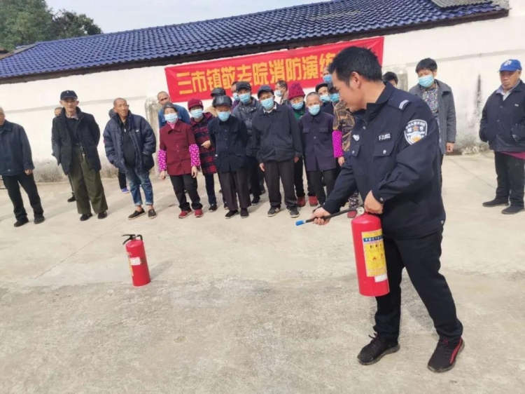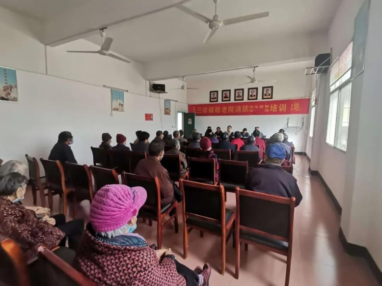 10月27日上午,三市镇安全办、民政办、三市派出所在三市敬老院联合举行消防安全培训及应急演练活动,敬老院全体老人参加。