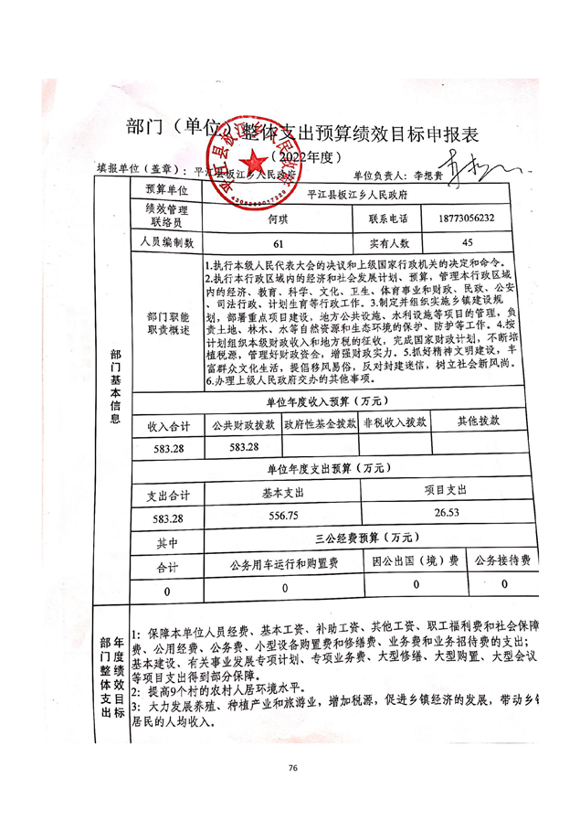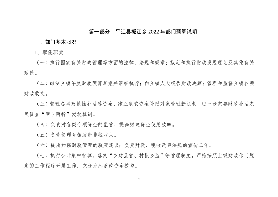 平江县板江乡2022年度部门预算及预算目标绩效编制公示