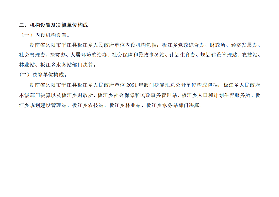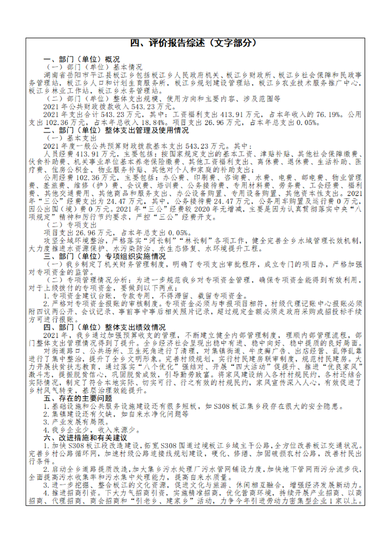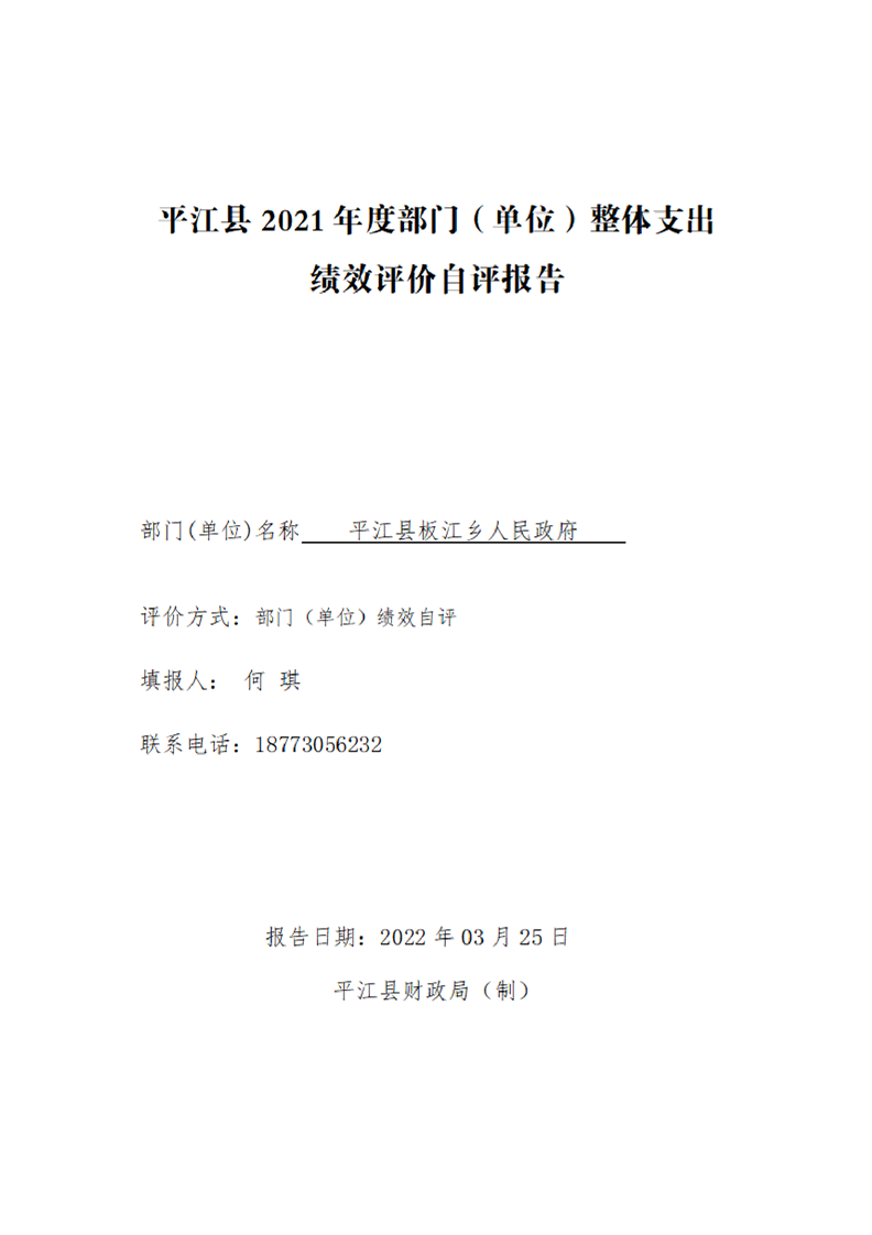 2021年平江县板江乡人民政府部门决算及整体绩效目标评价