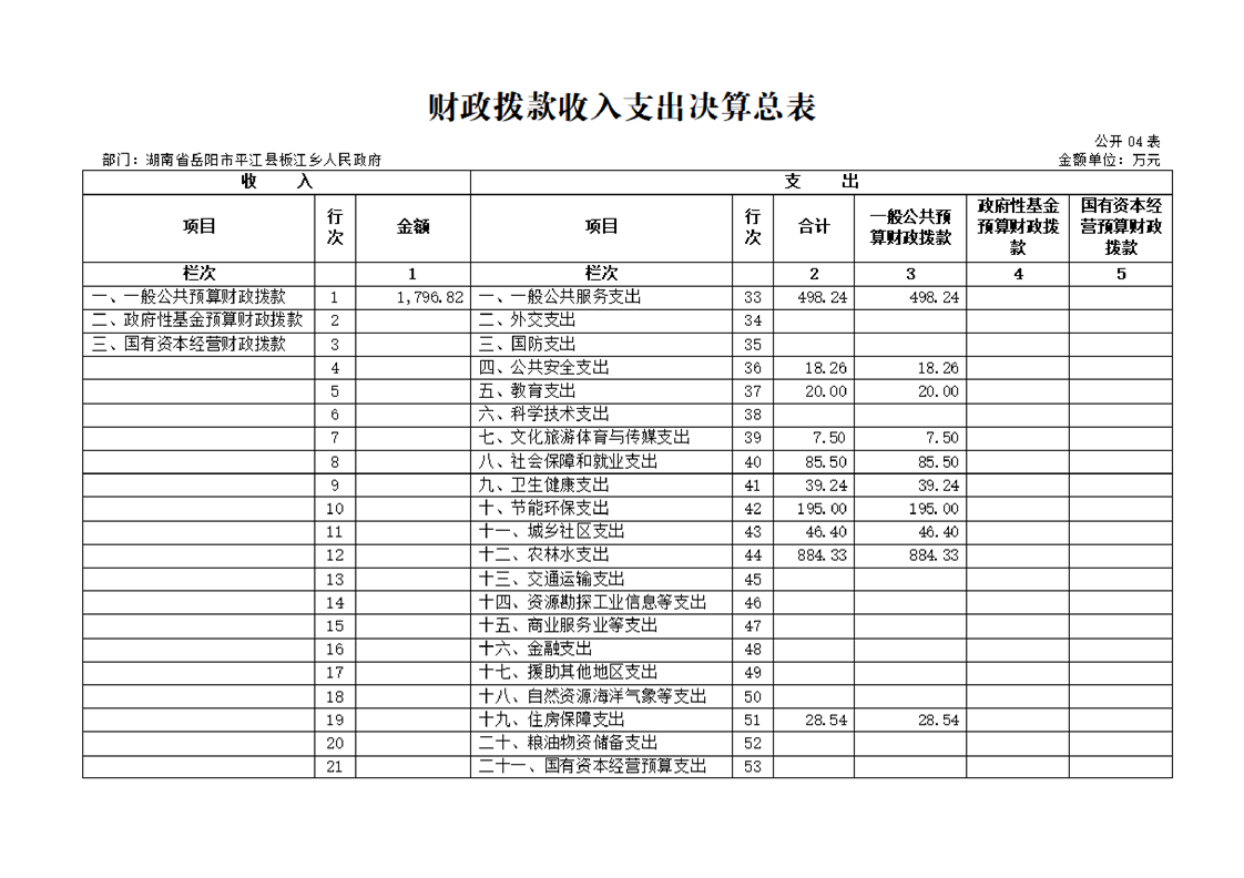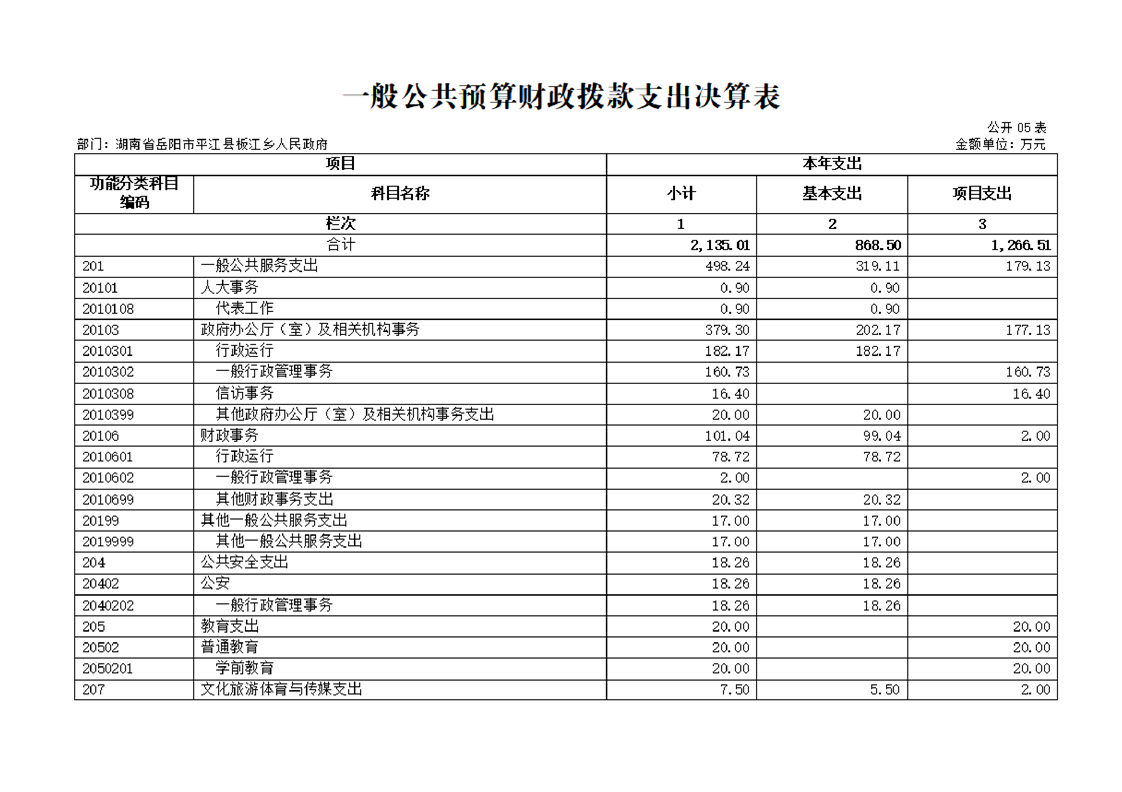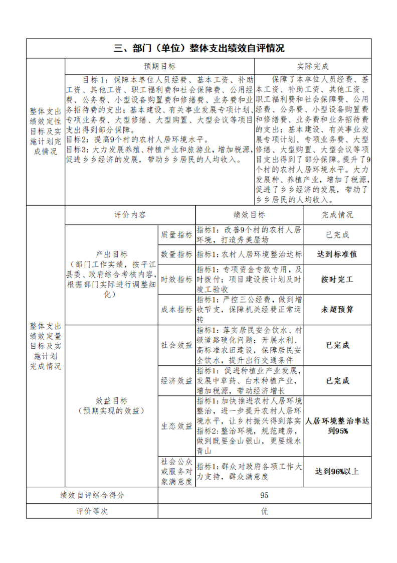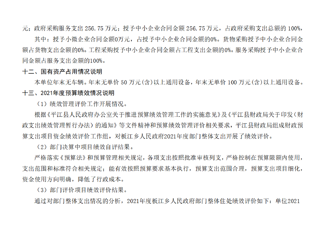 2021年平江县板江乡人民政府部门决算及整体绩效目标评价