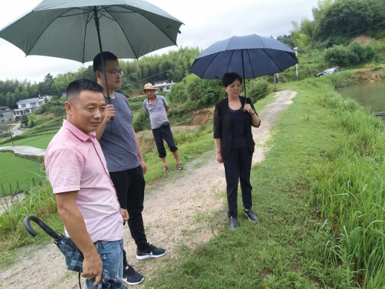 县人大常委会副主任吴姣姣、乡党委书记欧阳帆在查看水库水位