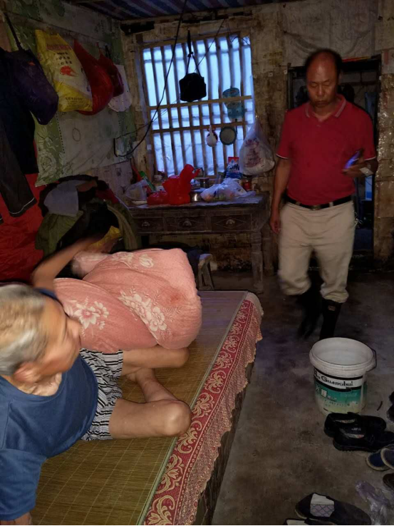 城建办主任何宏图与小水村村干部在转移受灾百姓