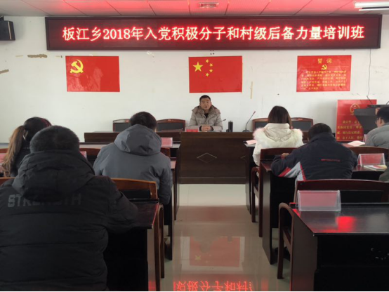 为进一步加强党的基层组织建设和党员队伍建设,提高党的执政能力,1月3日,板江乡举办2018年度入党积极分子和村级后备力量培训班。各支部入党积极分子、村级后备干部共计35人参加。