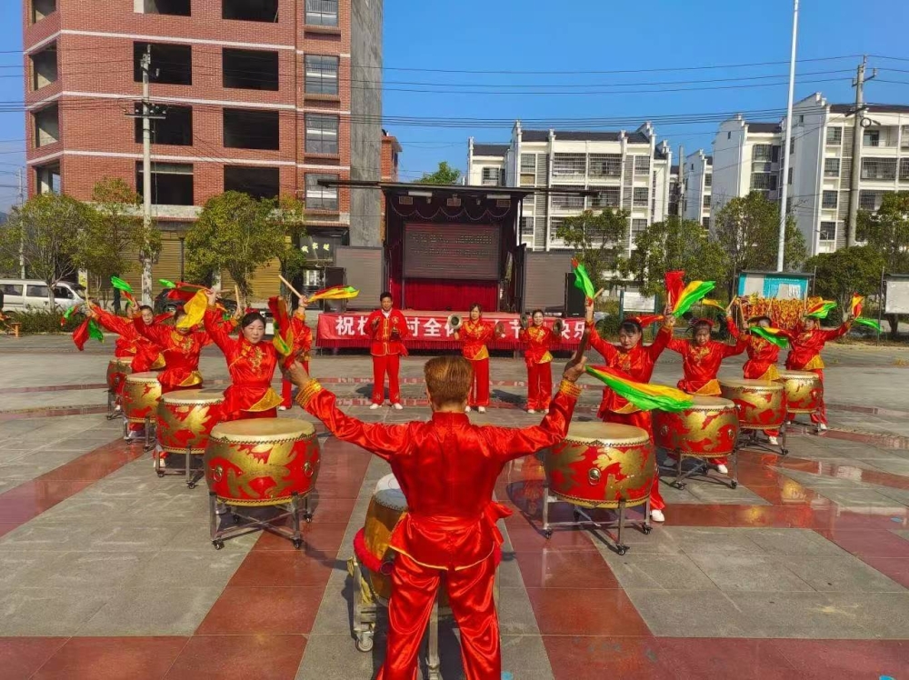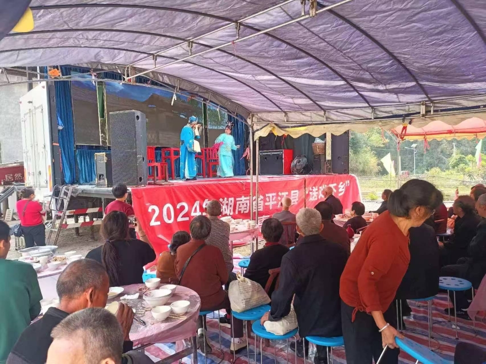 三江村开展戏曲表演并组织老人会餐。