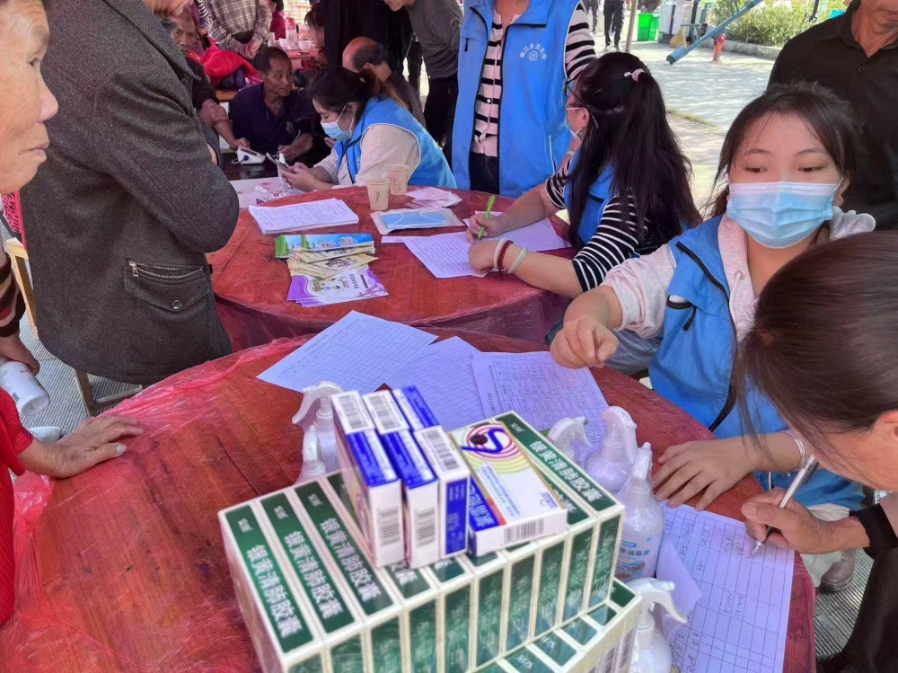 板江村邀请乡镇卫生院的医生为五百多位老人们开展健康讲座,普及秋季养生知识和常见疾病的预防方法。志愿者现场为老人们进行免费的健康检查。