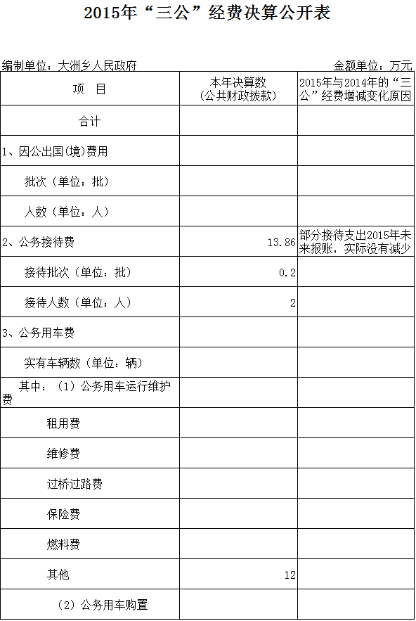 平江县大洲乡2015年度三公经费决算公开表