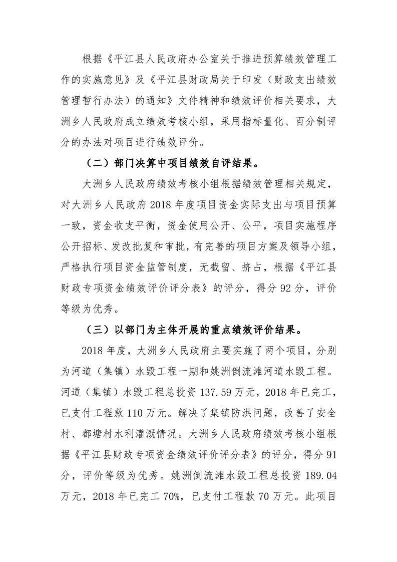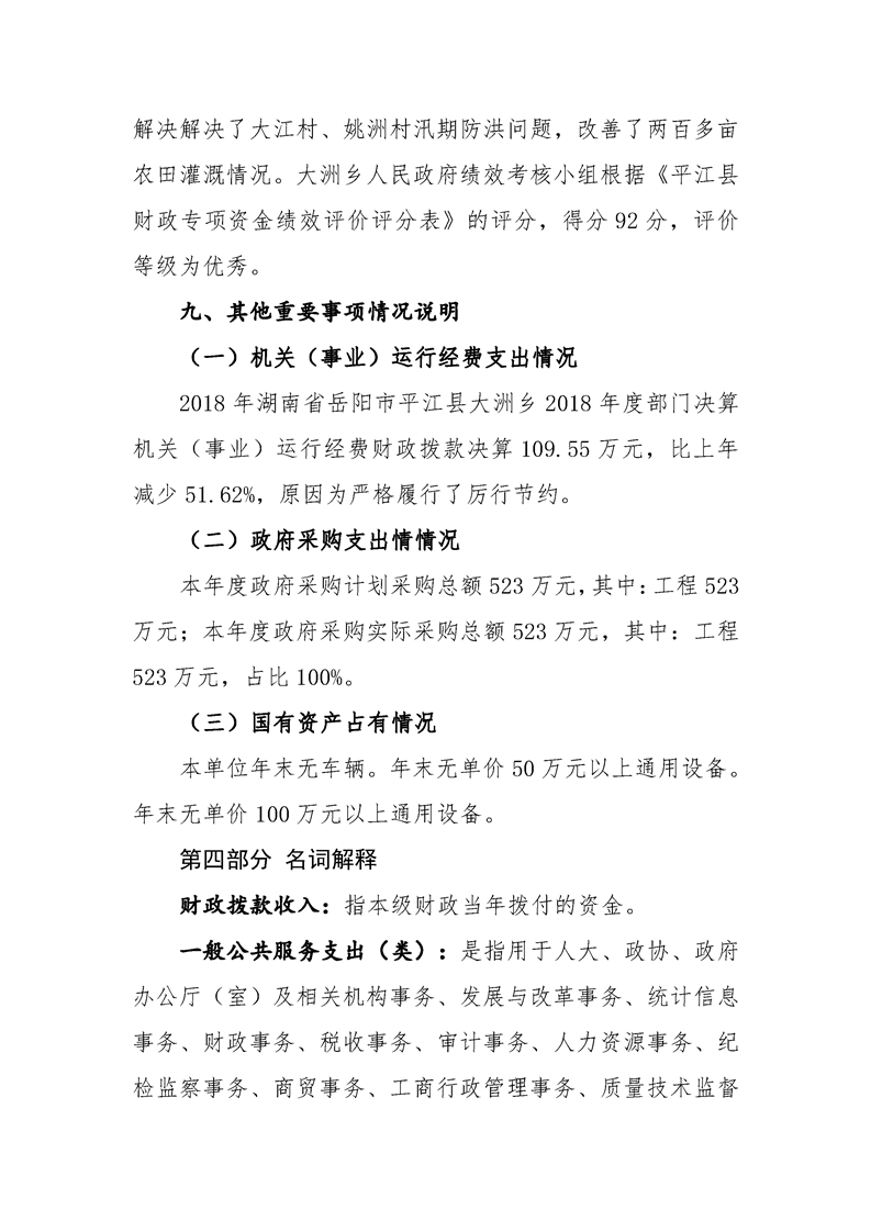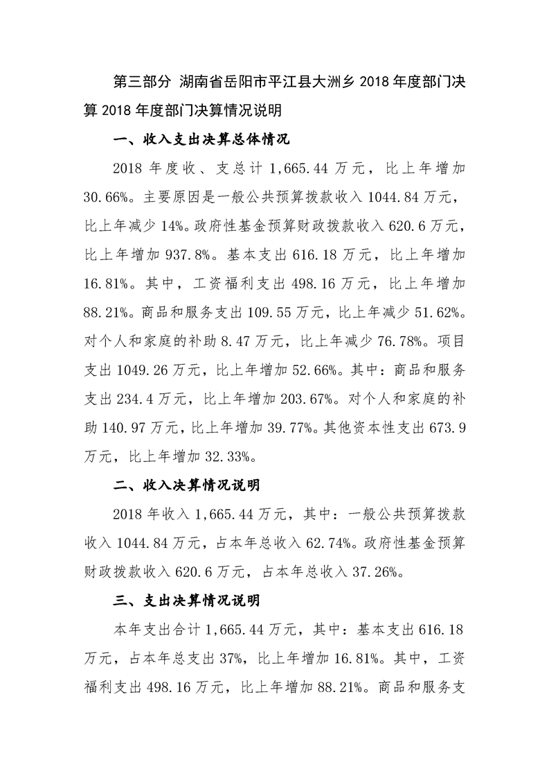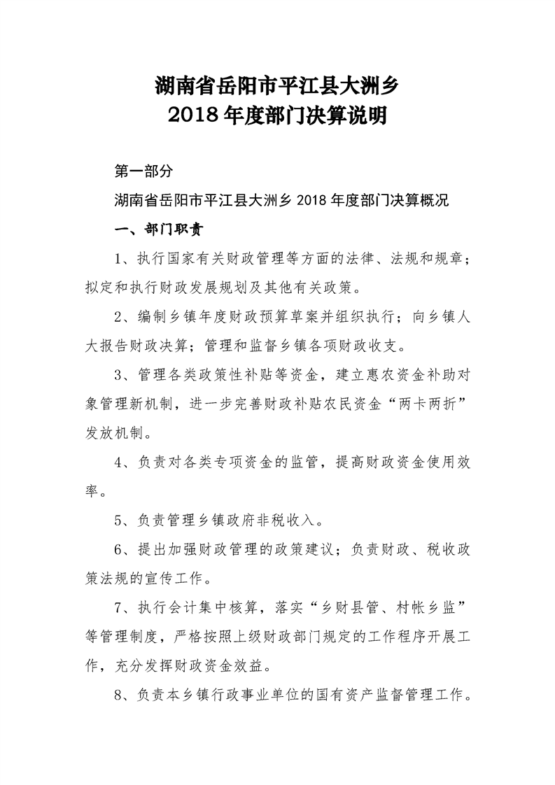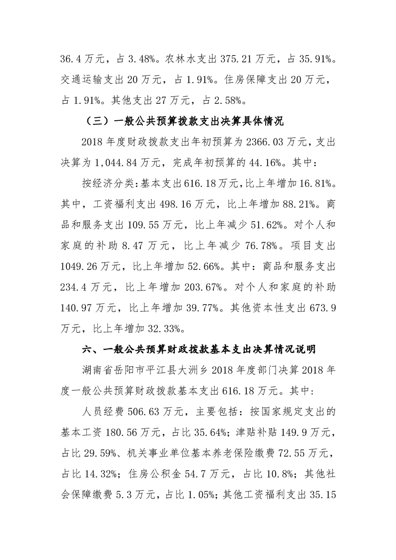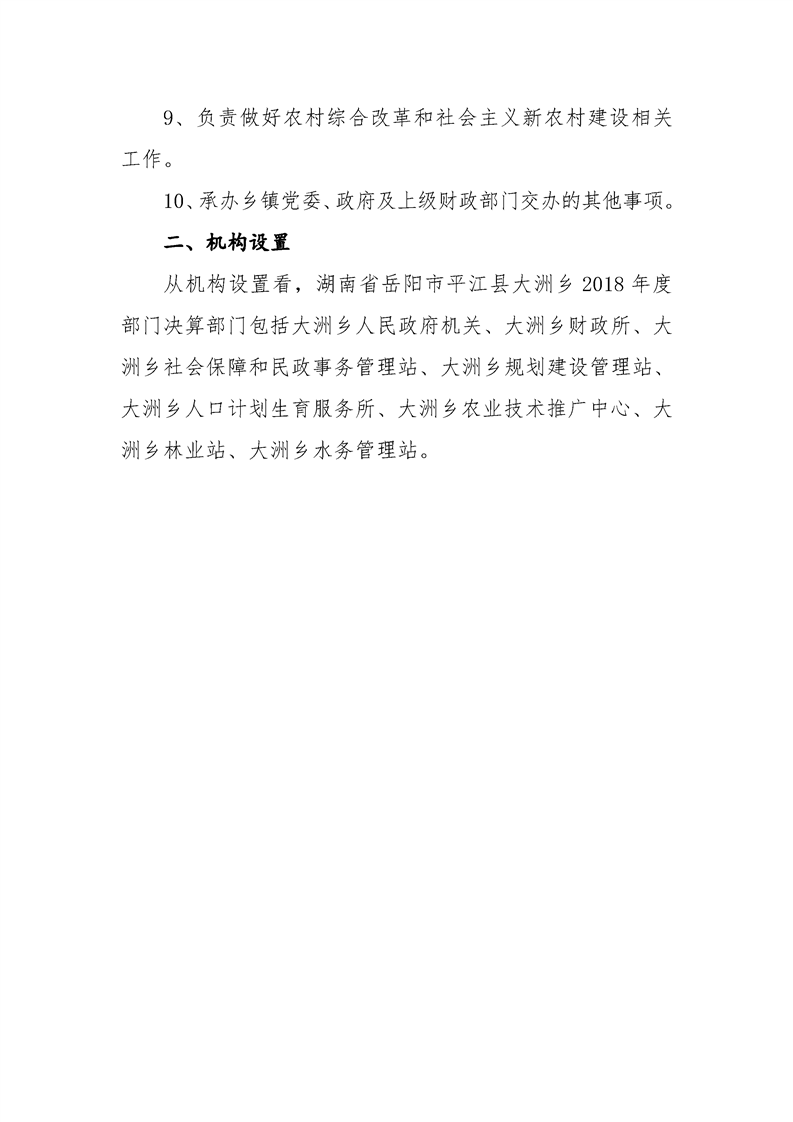 大洲乡2018年部门决算编报说明