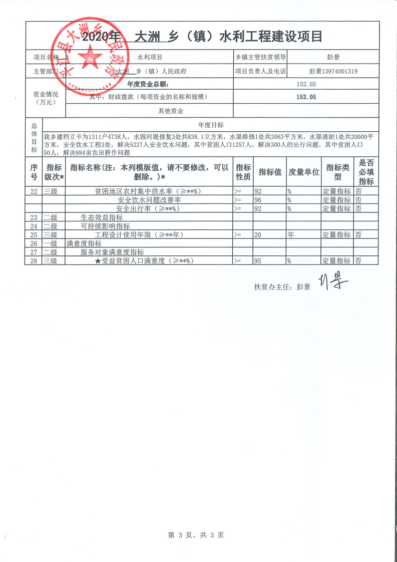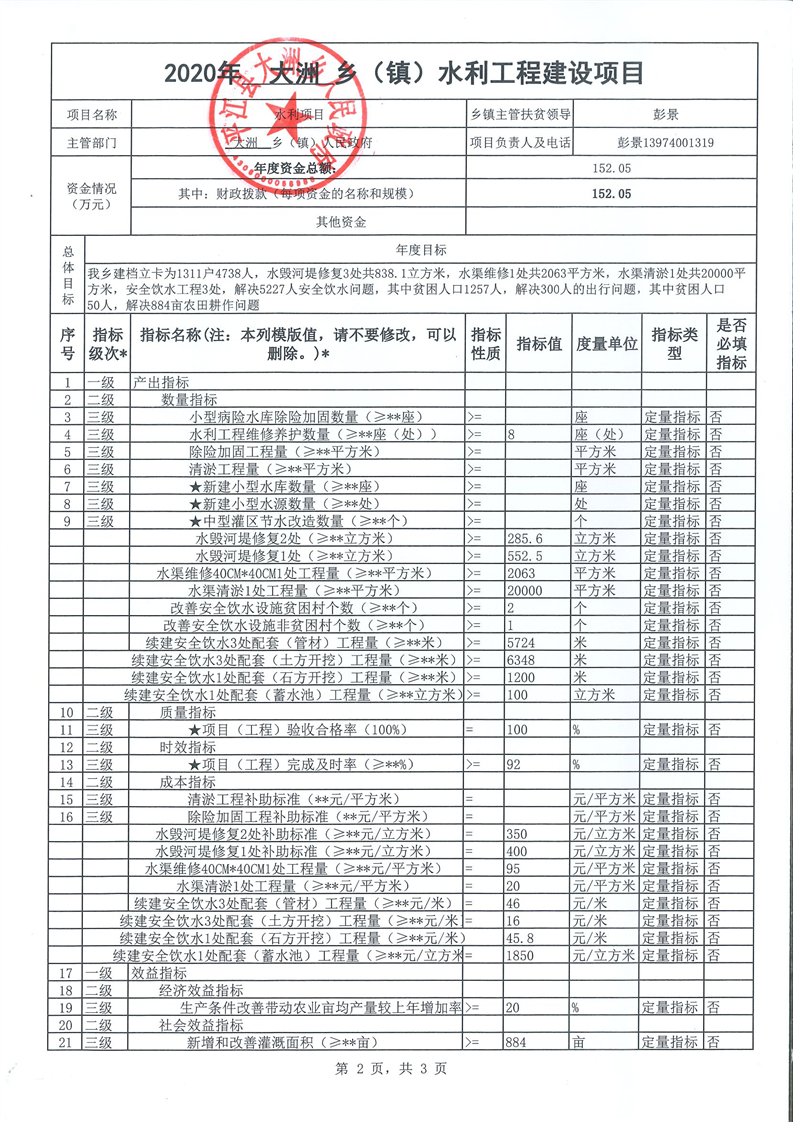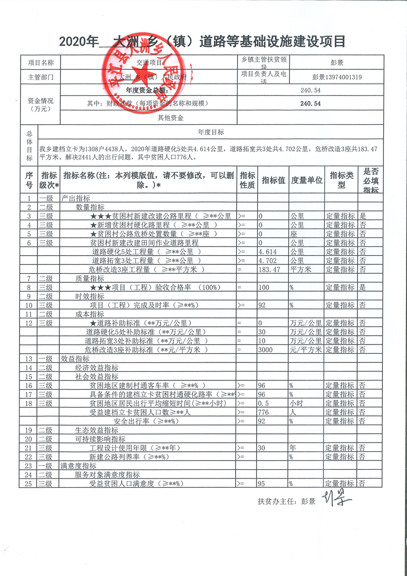 大洲乡2020年财政扶贫项目全过程绩效申报表