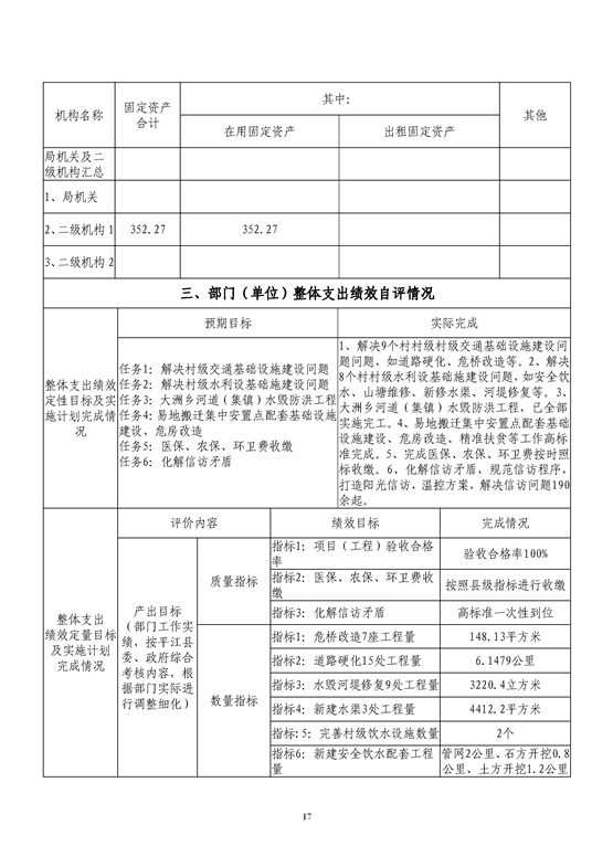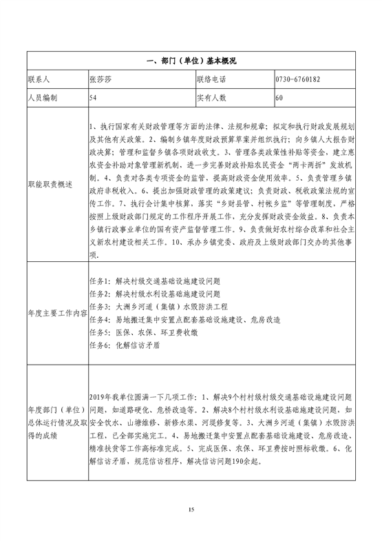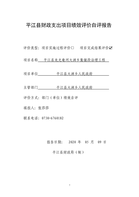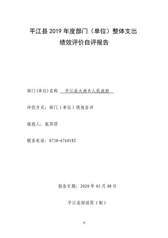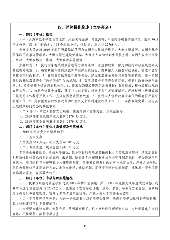 平江县大洲乡2019年绩效自评