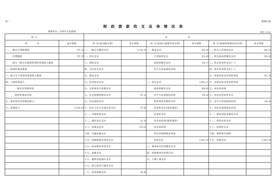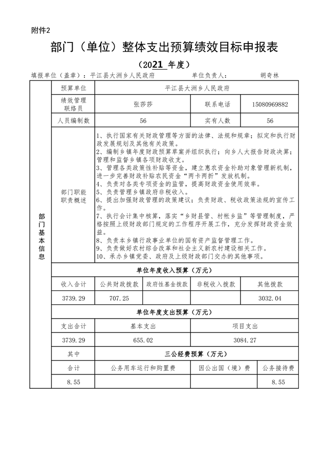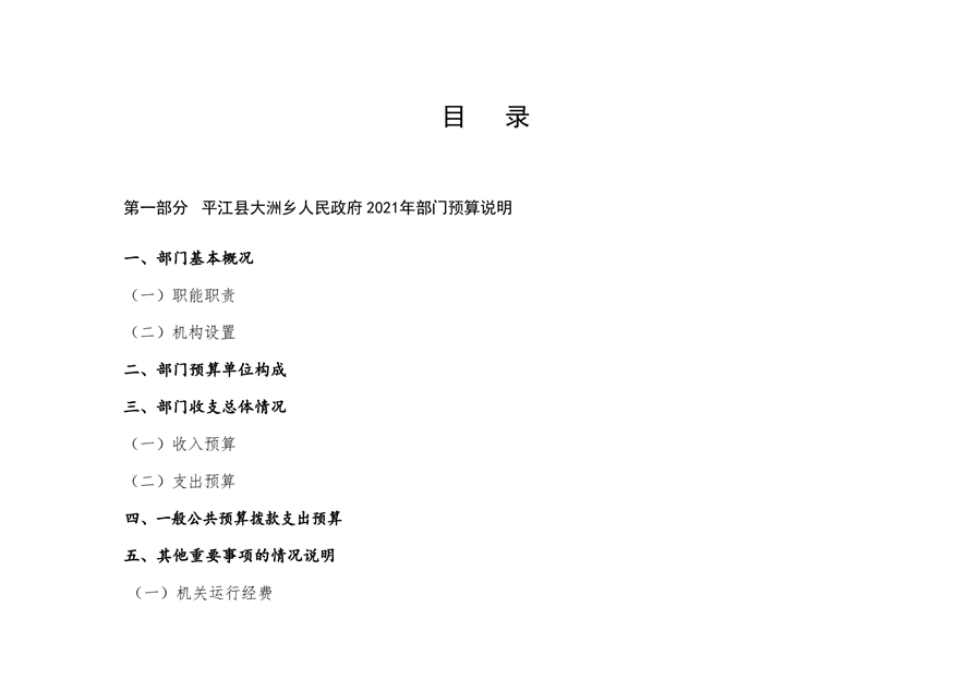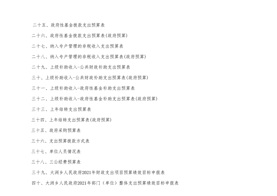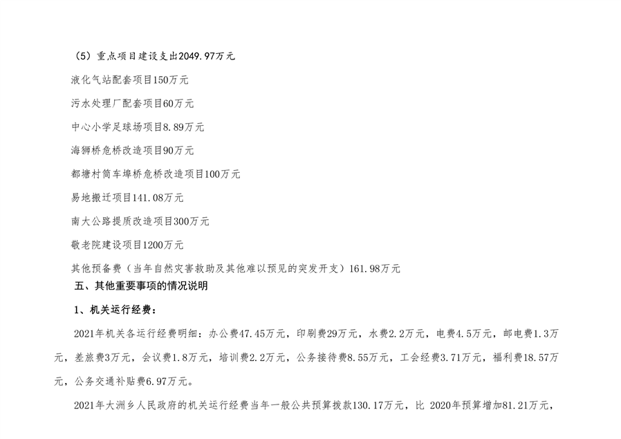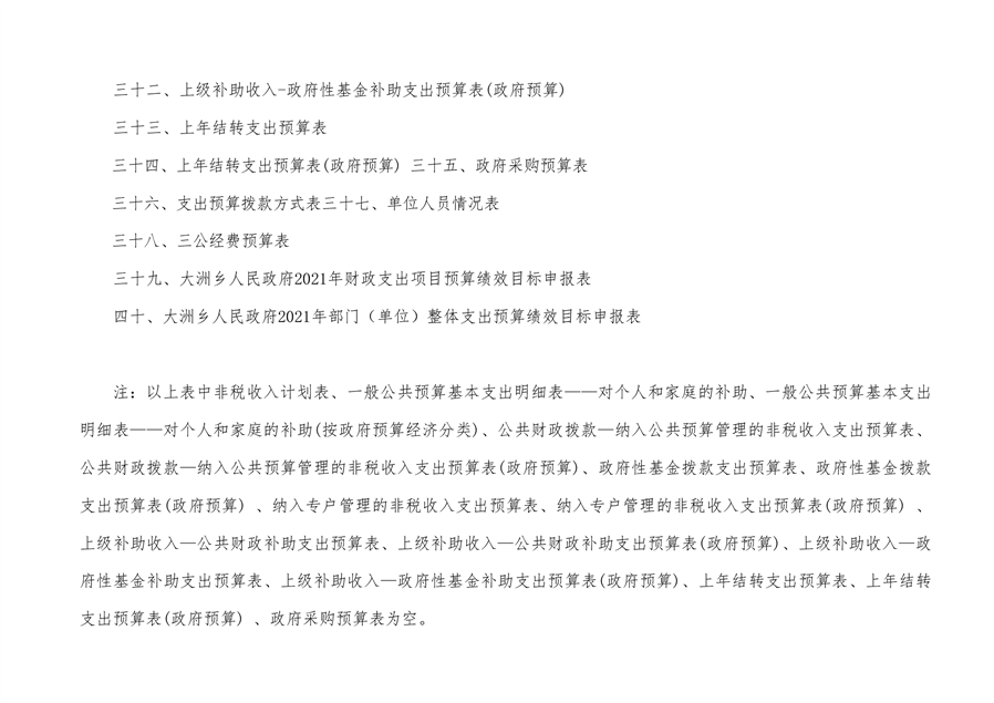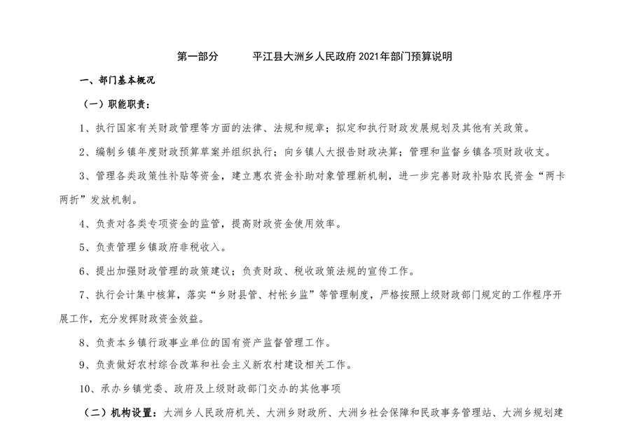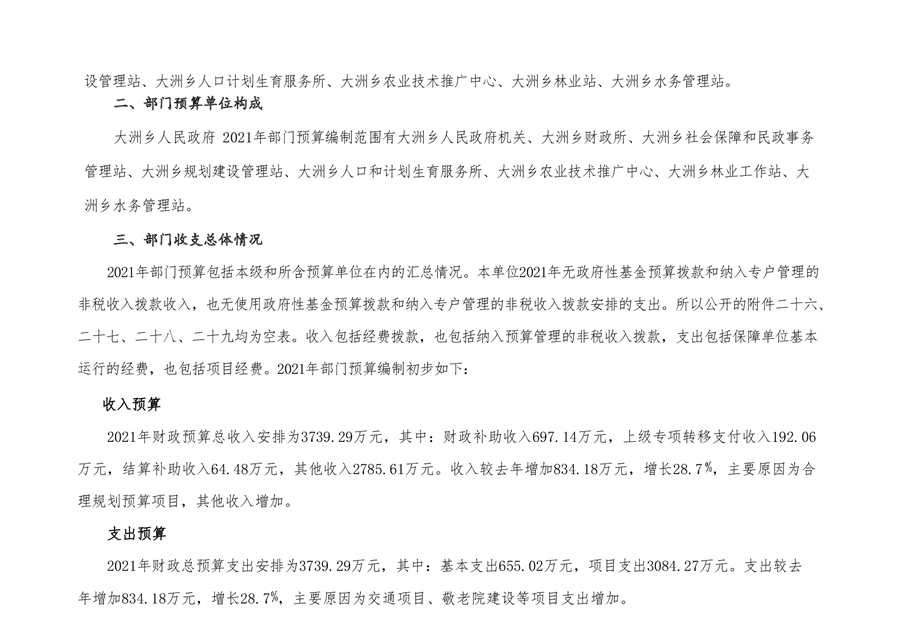 大洲乡人民政府2021年部门预算编报说明
