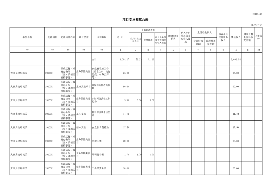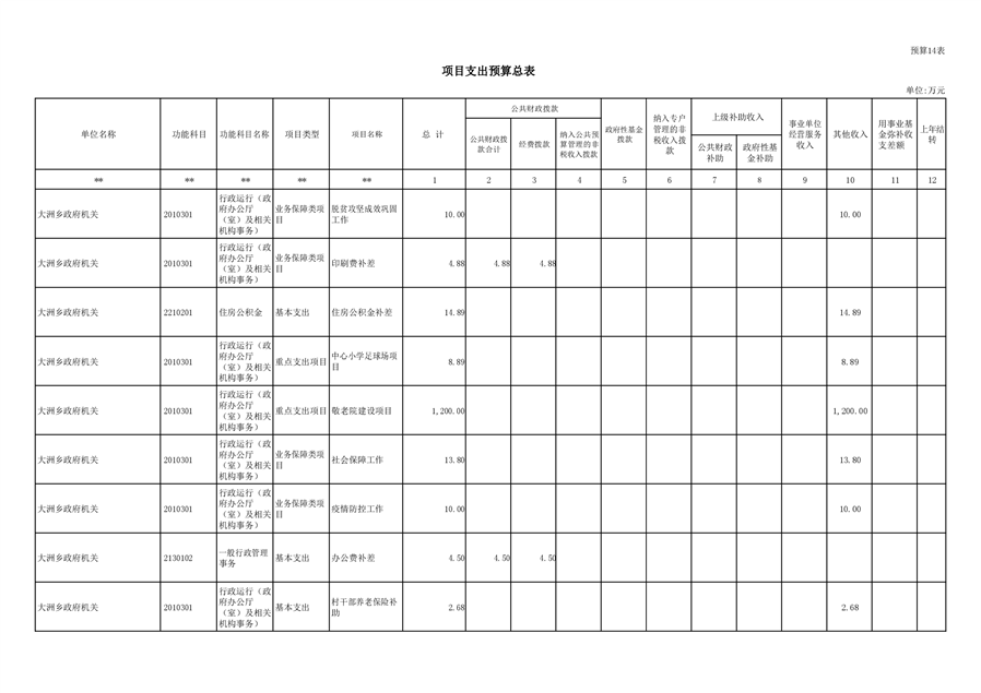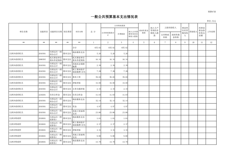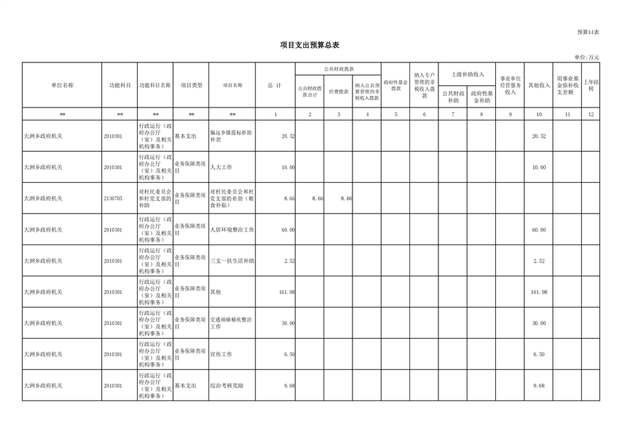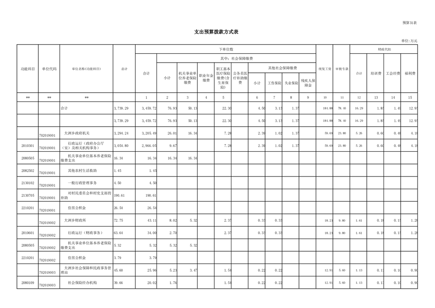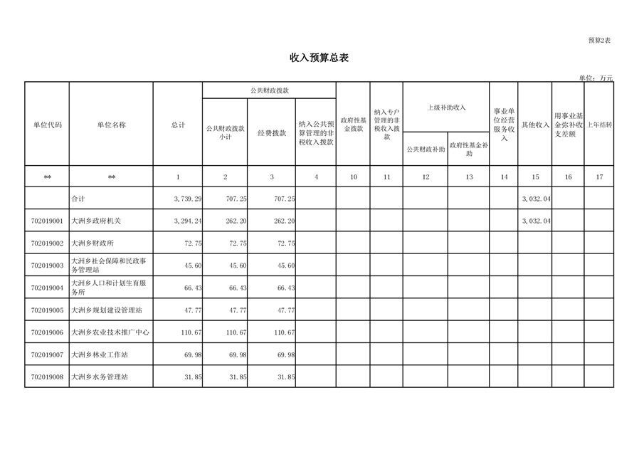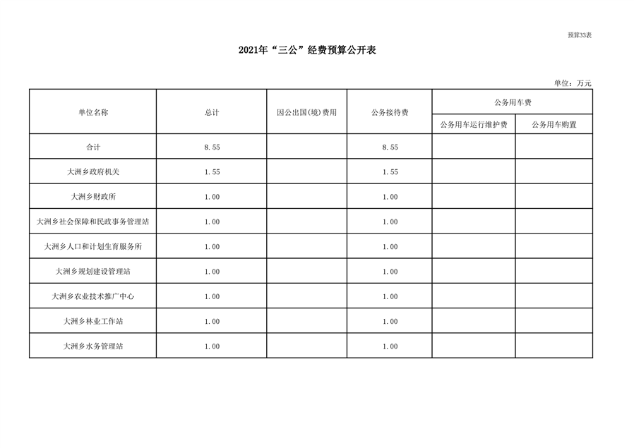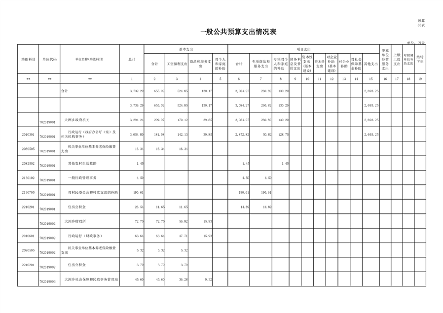 大洲乡人民政府2021年部门预算编报说明