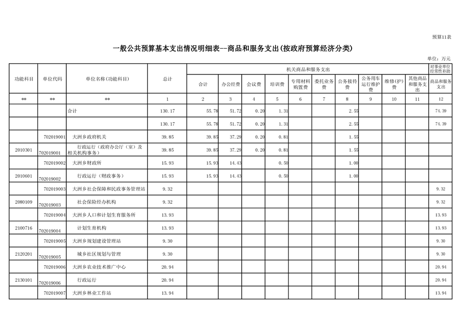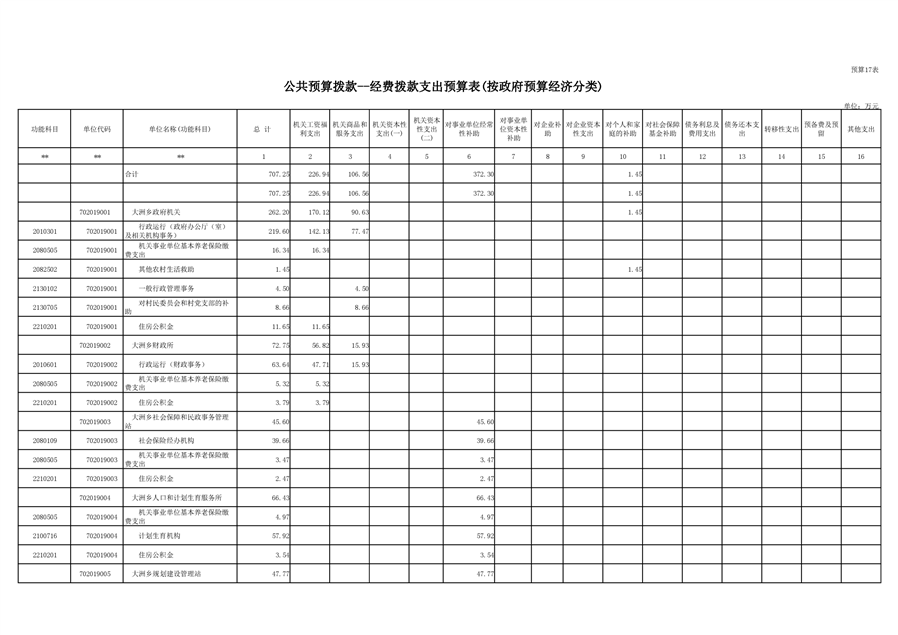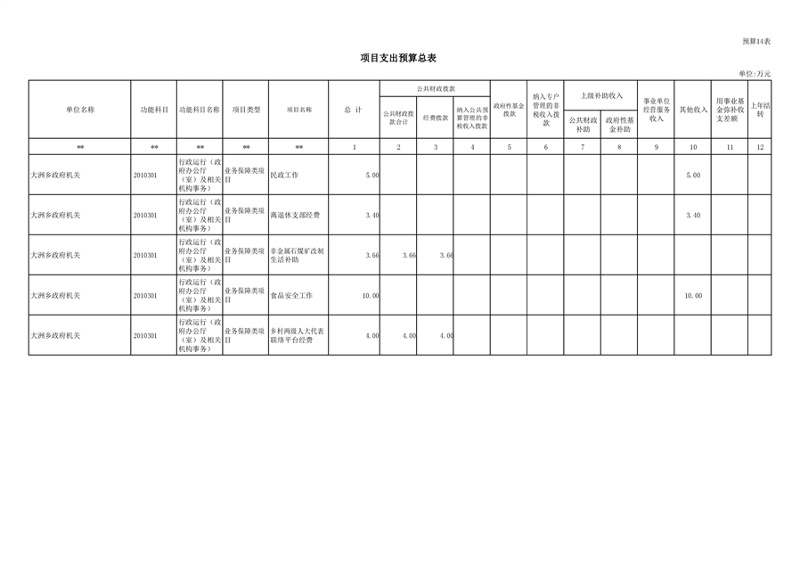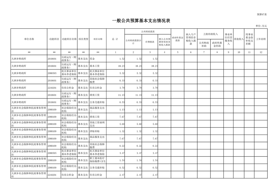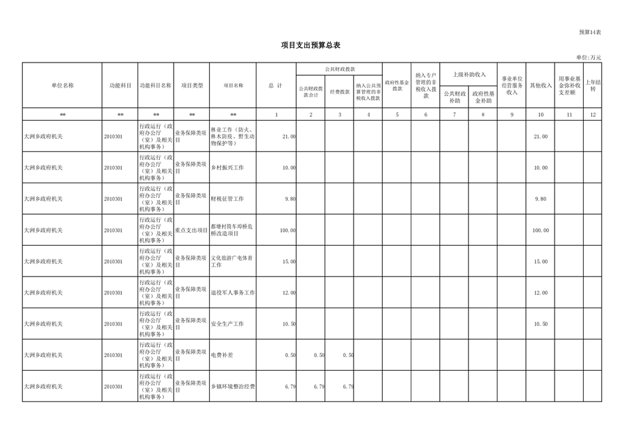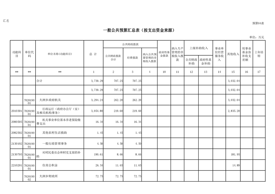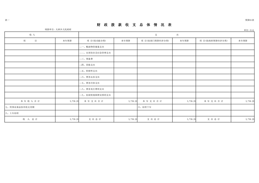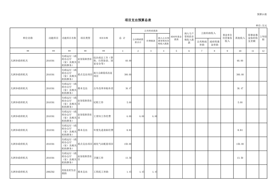 大洲乡人民政府2021年部门预算编报说明
