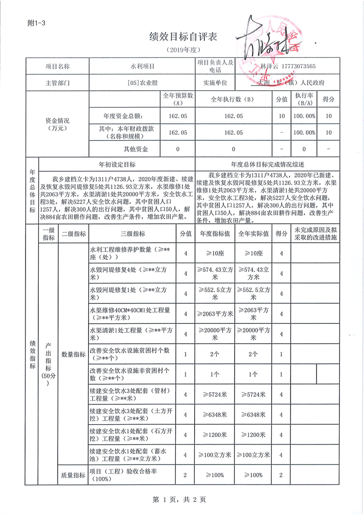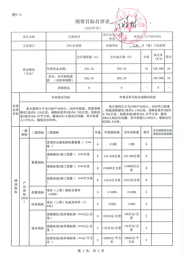 大洲乡2020年统筹整合涉农资金项目库绩效自评