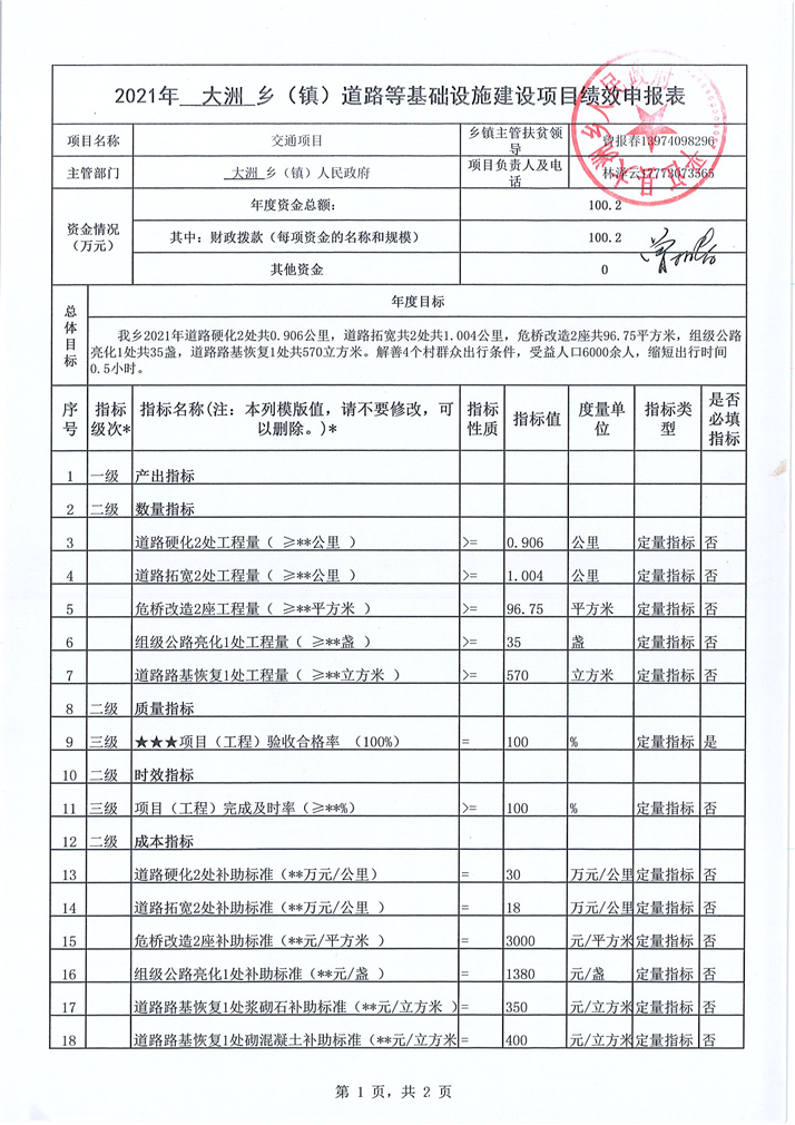 大洲乡2021年统筹整合涉农资金项目库绩效申报(交通)