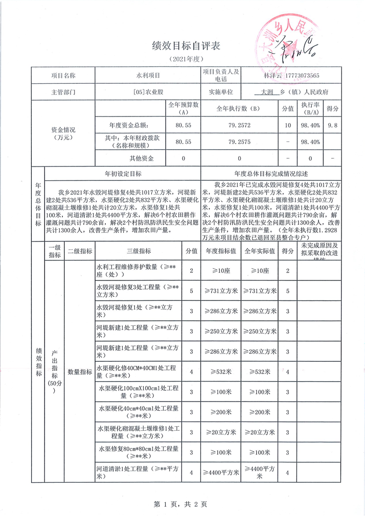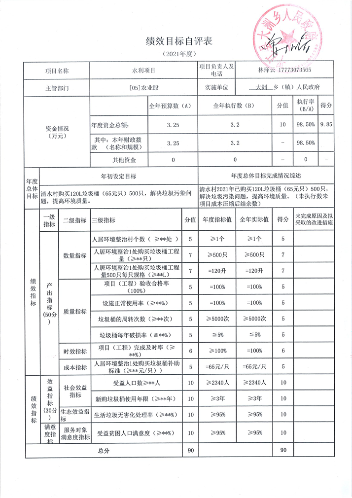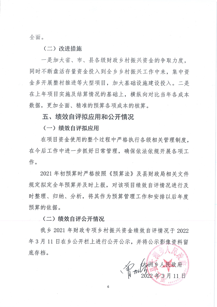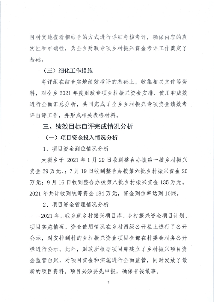 大洲乡2021年乡村振兴资金建设项目绩效自评表及自评报告