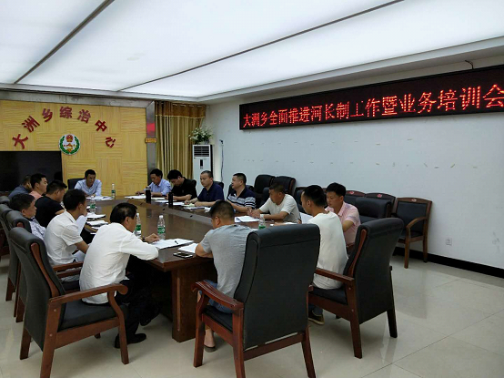 5月15日,大洲乡召开了全面推进河长制工作暨业务培训会,乡级总河长江新华、乡级总副河长李卧强、乡水务管理站、河道办全体成员和全体村级河长与会,会议由李卧强主持。