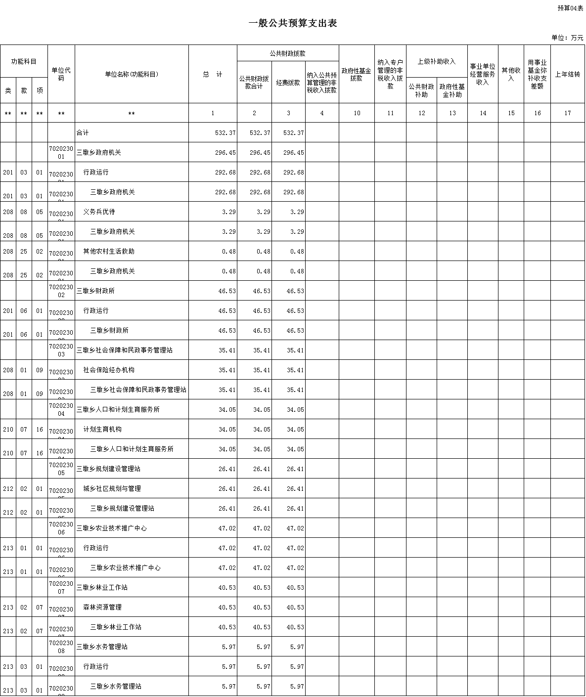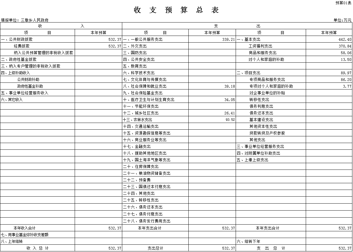 2016年预算收入532.37万元,2016年财政预算支出532.37万元,