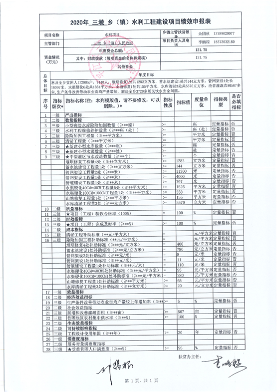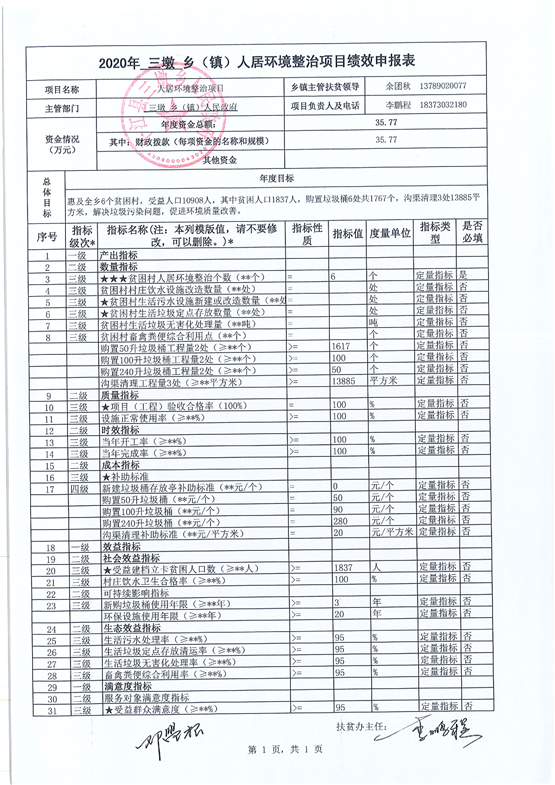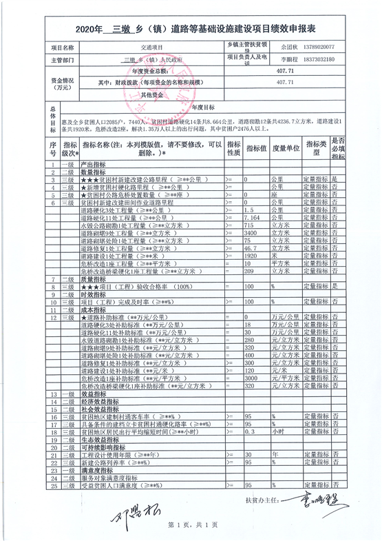 三墩乡2020年统筹整合涉农资金项目库预算绩效申报(调整)