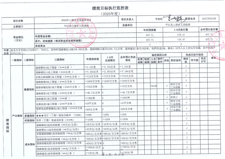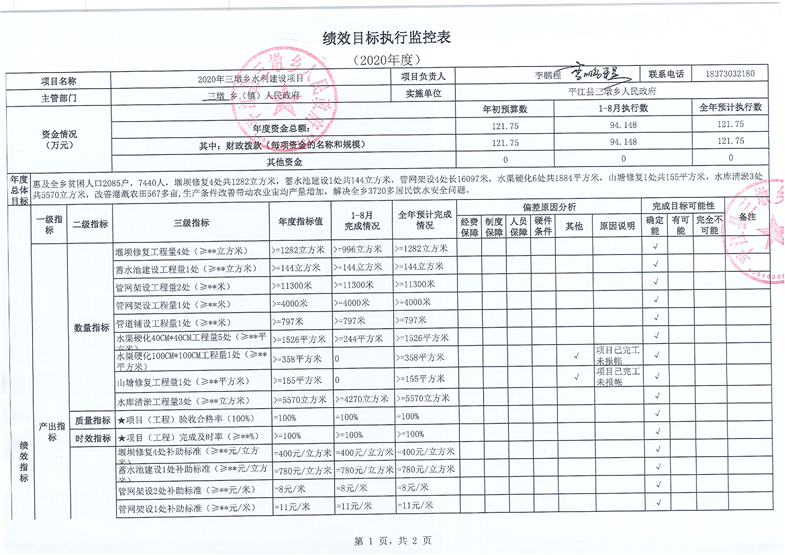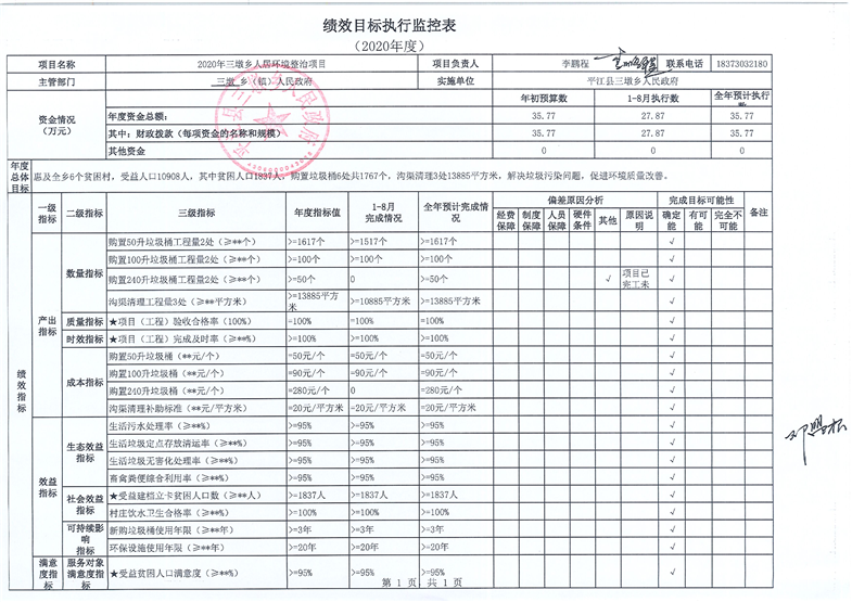 三墩乡2020年统筹整合涉农资金项目库预算绩效监控表