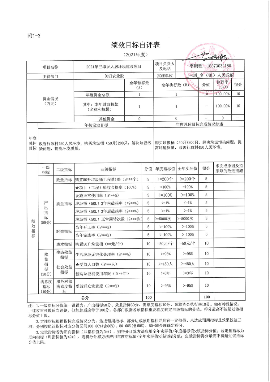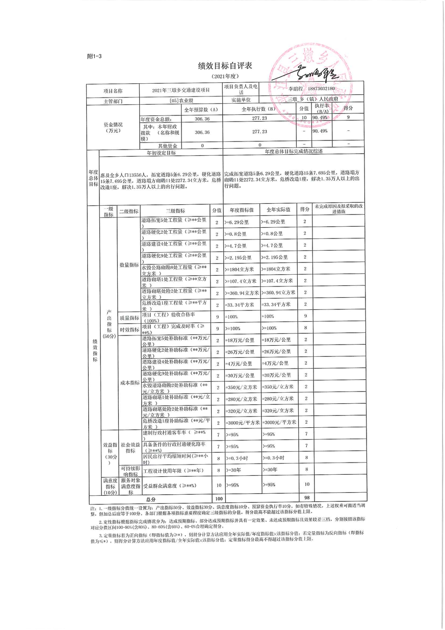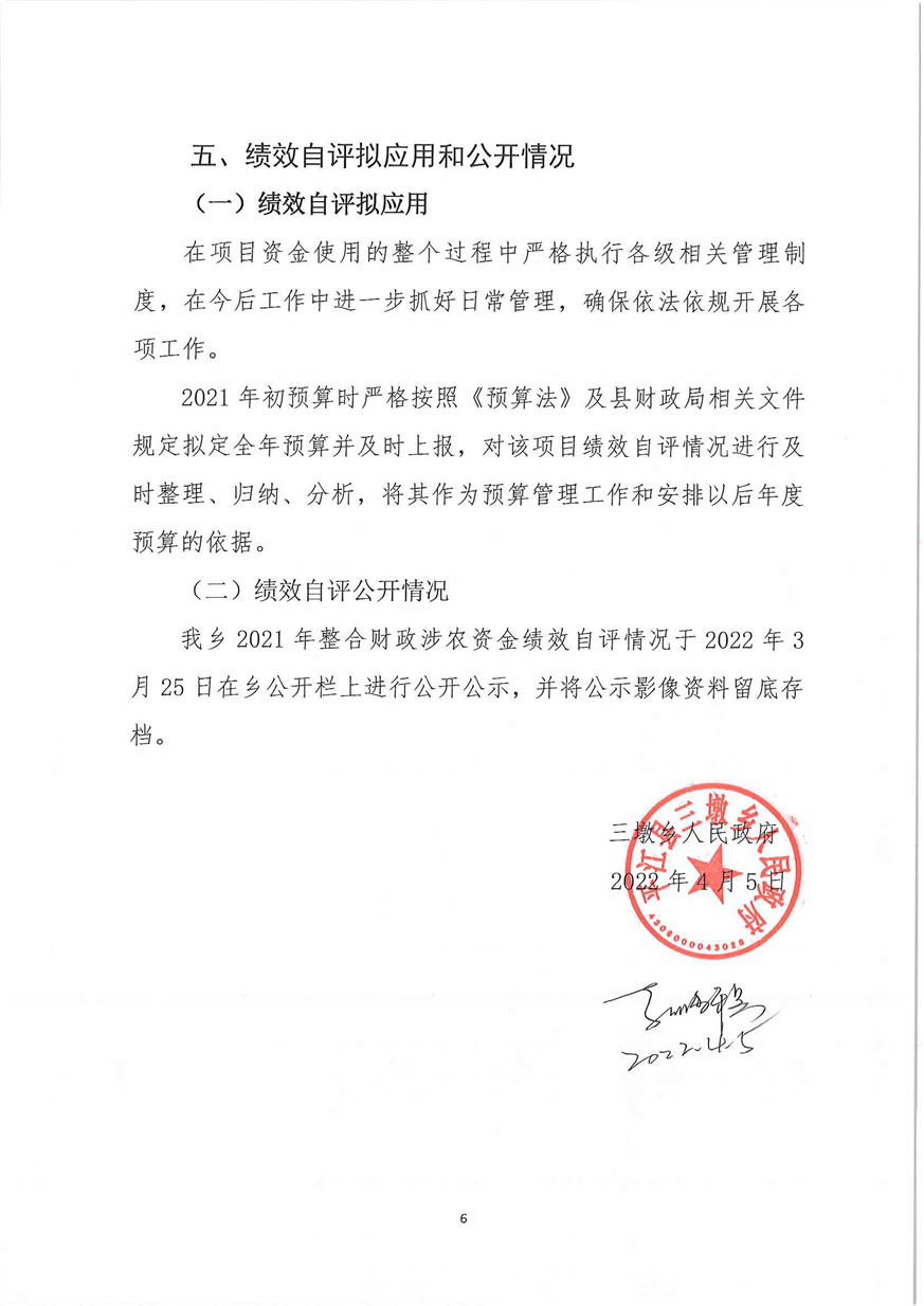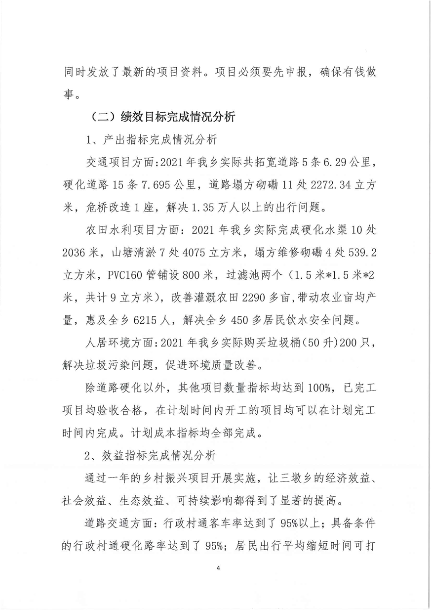 三墩乡人民政府2021年统筹整合使用财政涉农资金绩效自评总结报告