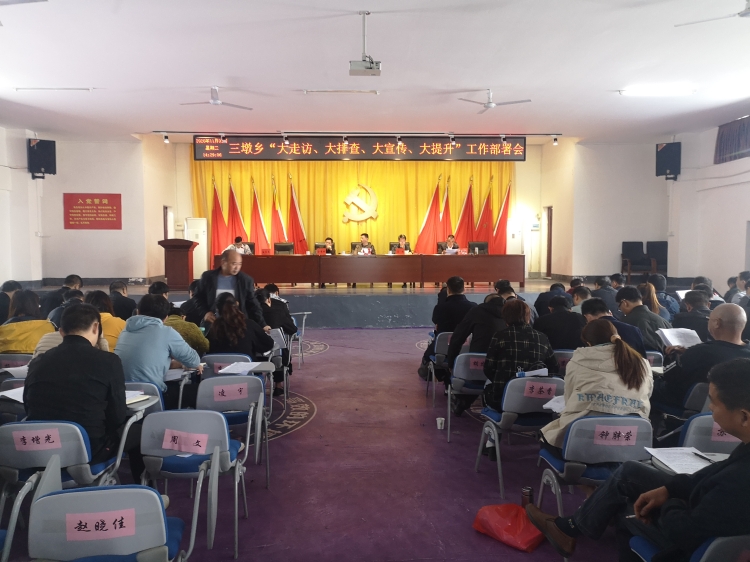 为进一步巩固提升脱贫攻坚工作质量,更好统筹推进其他各项工作,11月3日下午,三墩乡“大走访、大排查、大宣传、大提升”工作部署会在乡政府一楼大礼堂举行,全体机关干部、驻村工作队、部门负责人、各村支村两委干部等共120余人参加,会议由党委副书记、乡长候选人晏路主持。