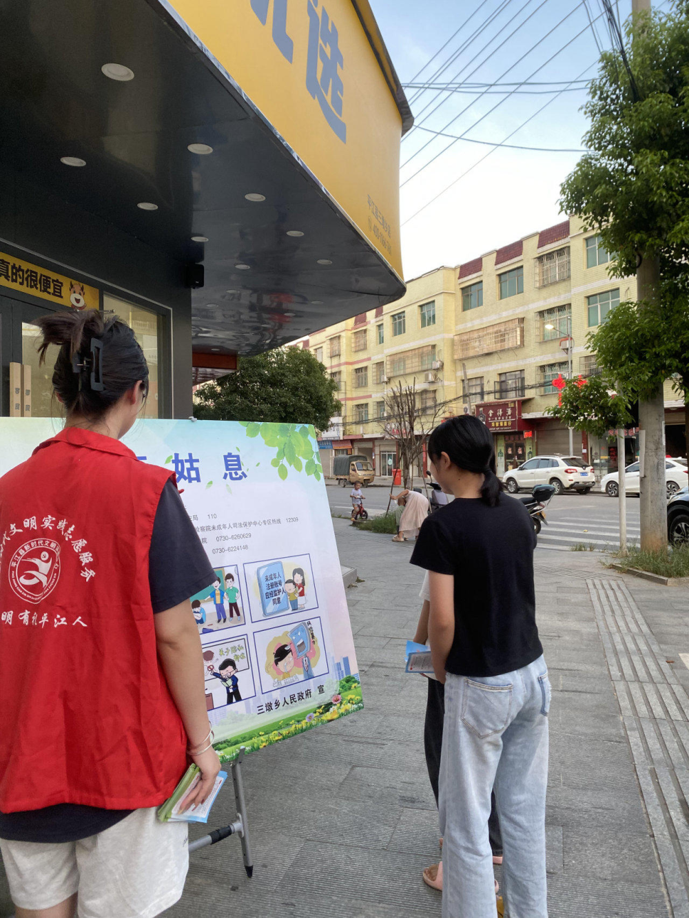为持续开展利剑护蕾的保护工作,推动工作落实,普及防溺水、防性侵、防校园霸凌等相关知识与法律法规,提升青少年自我防范意识和应急处理能力,8月8日,三墩乡综治办、民政社工站联合派出所开展“利剑护蕾·雷霆行动”夏季攻势集中宣传活动。