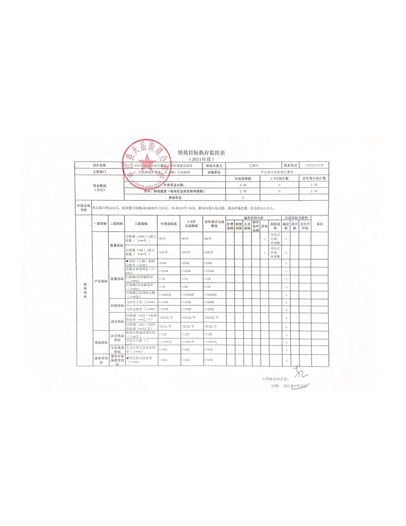天岳街道办事处2021年统筹整合涉农资金项目绩效监控表