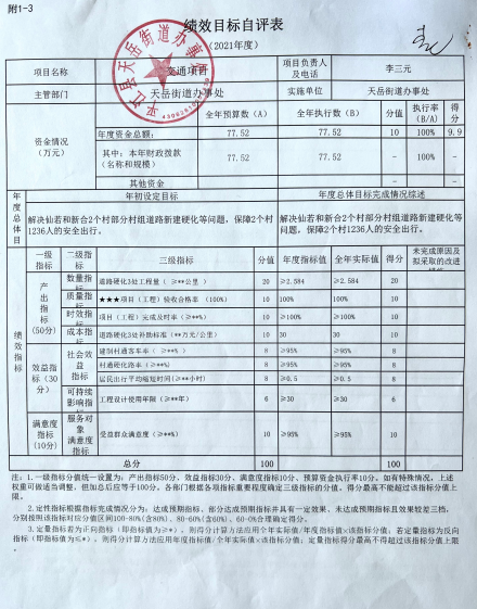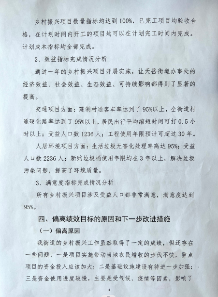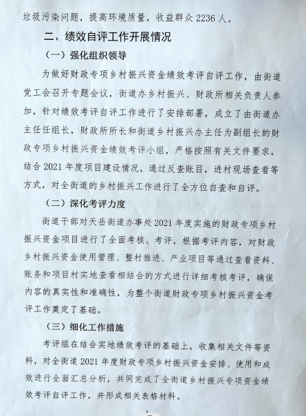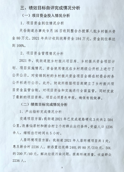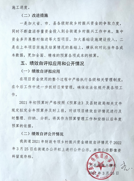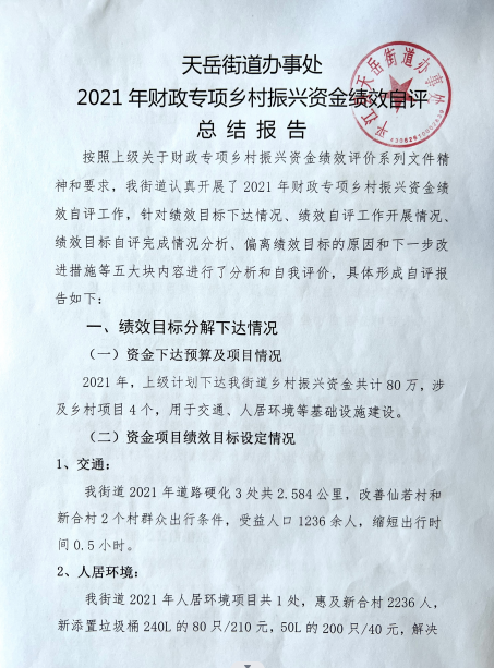 天岳街道办事处2021年乡村振兴资金建设项目绩效自评