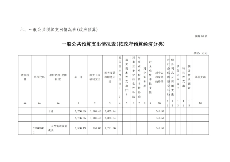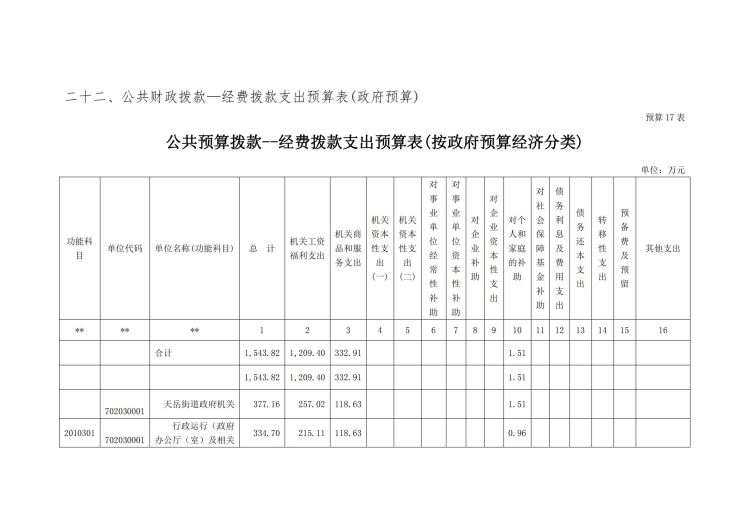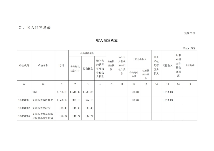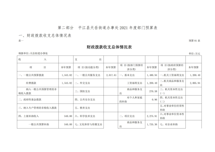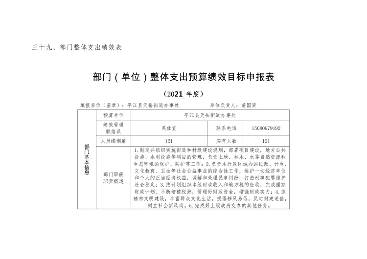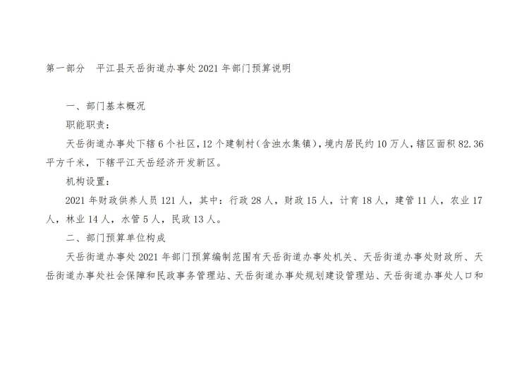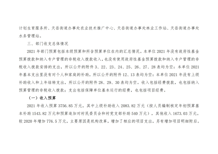 2021年天岳街道办事处部门预算公开说明及整体绩效目标公开公示