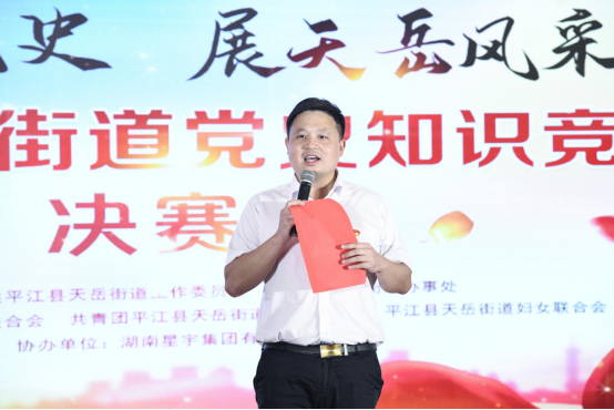 天岳街道党工委书记姚志红宣布天岳街道党史知识竞赛决赛正式开始
