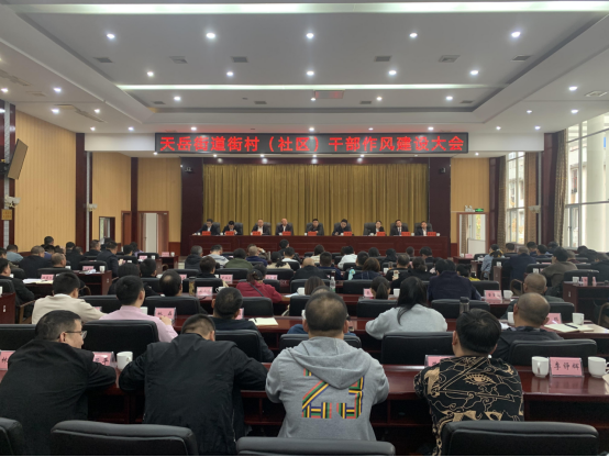 10月26日下午,天岳街道在县委党校中心会议厅召开街村(社区)干部大会,传达学习贯彻县“两会”精神,进一步加强干部作风建设,以扎实作风、昂扬姿态和过硬举措推进各项工作目标任务,推动县“两会”精神在天岳街道落地生根。天岳街道党工委书记姚志红出席并讲话,党工委副书记、办事处主任游国贤主持会议,全体党政负责干部和机关干部职工,各部门负责人、各村(社区)支部书记参加。