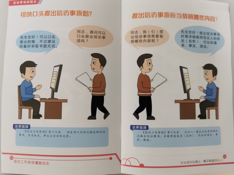 “你们这宣传活动真是搞得好!我要多拿点资料回去认真看看!”一位马头山社区居民点头夸赞道。活动现场气氛热烈,许多群众兴致勃勃,纷纷驻足领取资料,观看展板,并时不时向工作人员提问。工作人员将《信访工作条例》与本单位的职能范围有机结合,采取张贴宣传海报,发放图册,现场讲解等多种形式,从不同角度为群众答疑解惑,把晦涩难懂的规章条例转化为“漫画说法、故事说法、情景说法”等通俗易懂的内容,帮助群众更好地了解什么是信访、如何信访,详细告知信访人的权利义务及明令禁止的事项,有效引导群众合理合法反映个人诉求,为进一步畅通信访渠道,预防信访矛盾,规范信访行为指明方向。