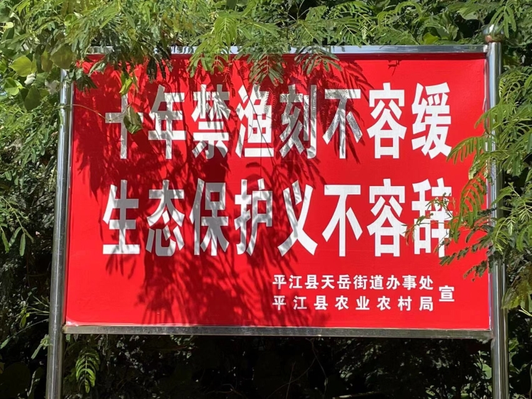2022年7月21日,长江白鲟的灭绝给我们重重地敲响了警钟,事实证明渔业保护容不得丝毫放松懈怠,天岳街道将继续加强执法力度,用铁腕手段坚决筑牢生态防线。我们也呼吁每一名天岳人以此为戒、尽己所能,共同参与生态环境保护,让水清鱼跃、岸绿景美的和谐画面常有常新,让生态优先、绿色发展的道路越走越宽。