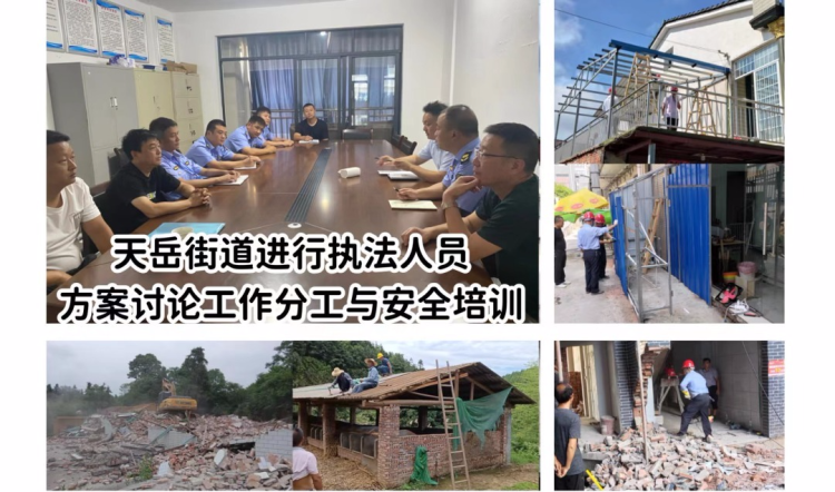 为抓实抓细房屋拆违工作,有效保障群众住房安全,今年来,天岳街道采取“三个强化”的举措,坚持严查重处、绝不姑息,对违法建筑进行全面巡查整改,做到不留死角、不留盲区。